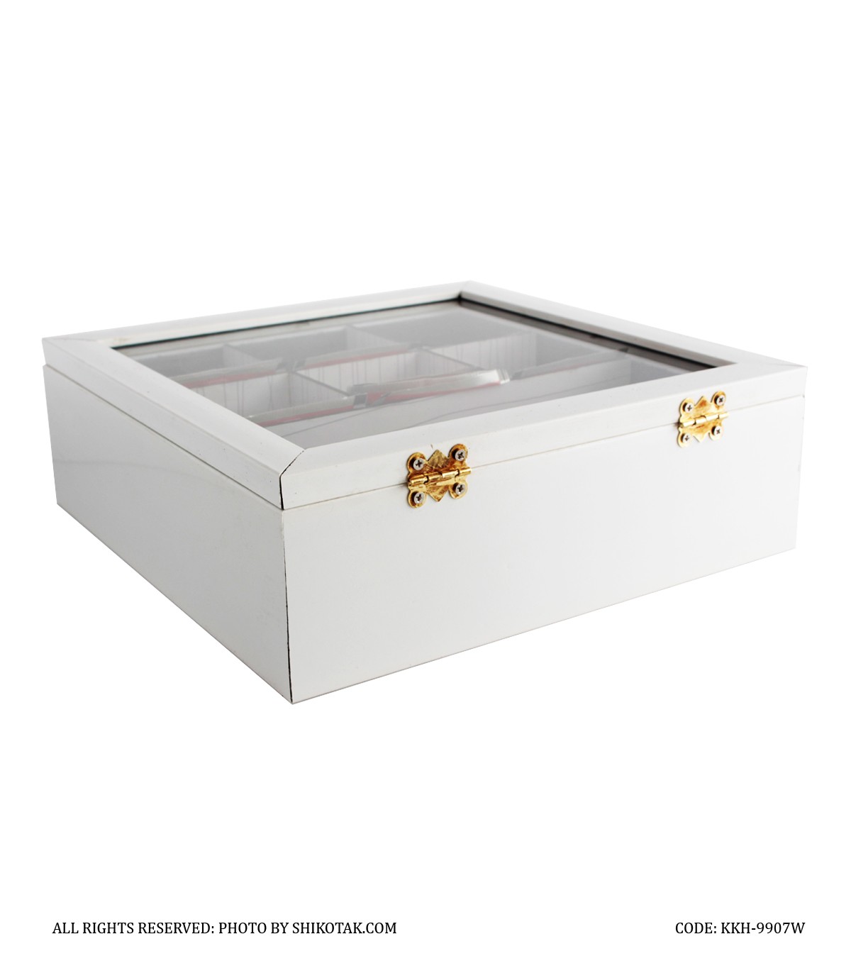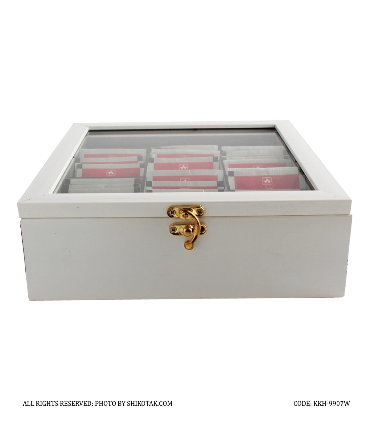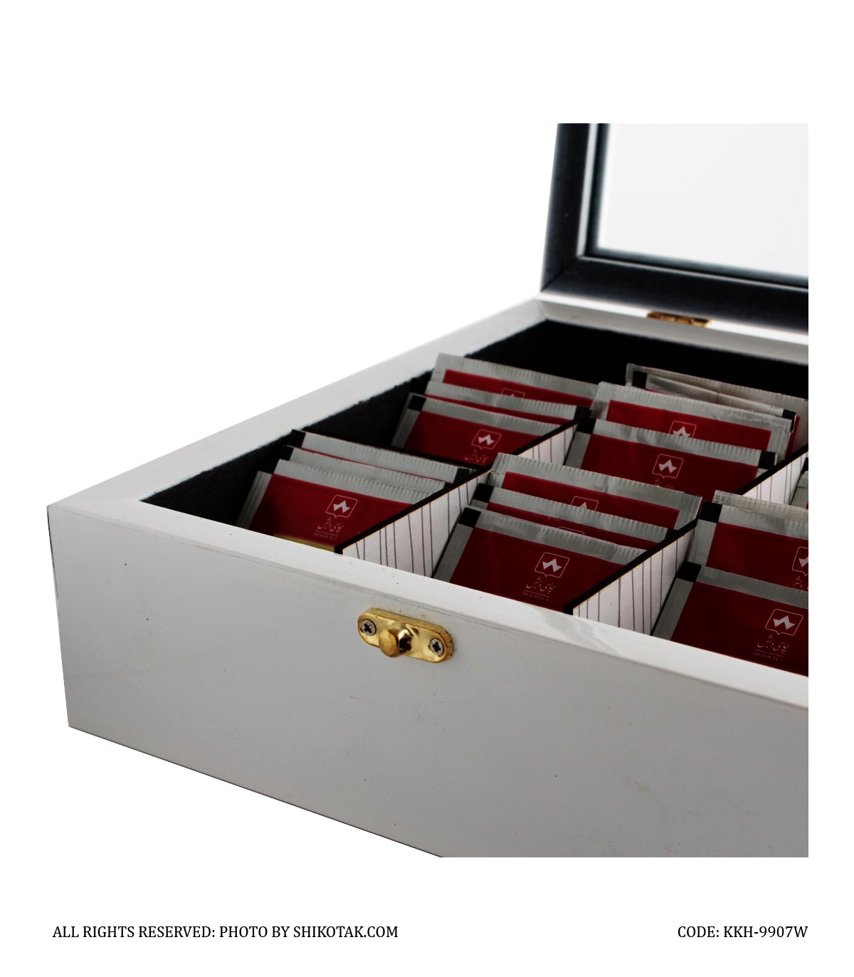 جعبه تی بگ هفت خانه سفید چوبی ساده