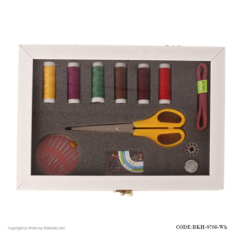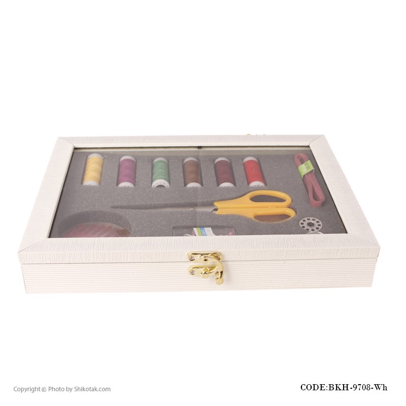 جعبه لوازم خیاطی سفید مستطیلی چوبی مدل 9708