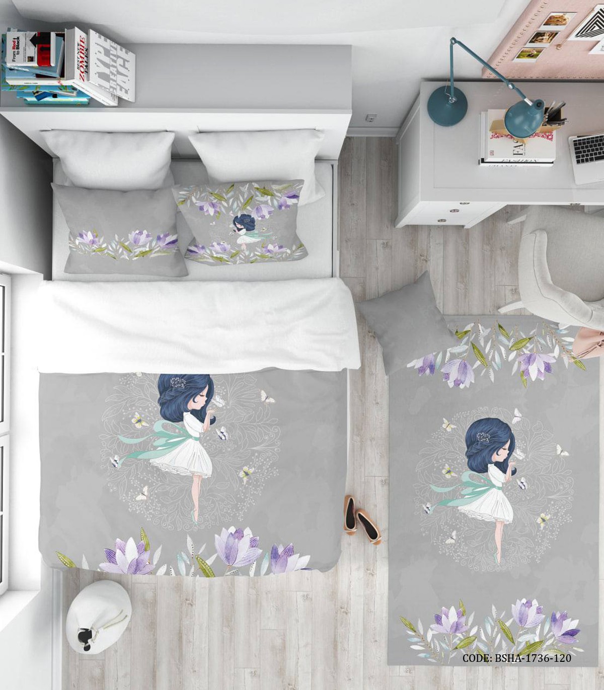 روتختی خاکستری اتاق دخترانه طرح دختر مدل Pretty Girl