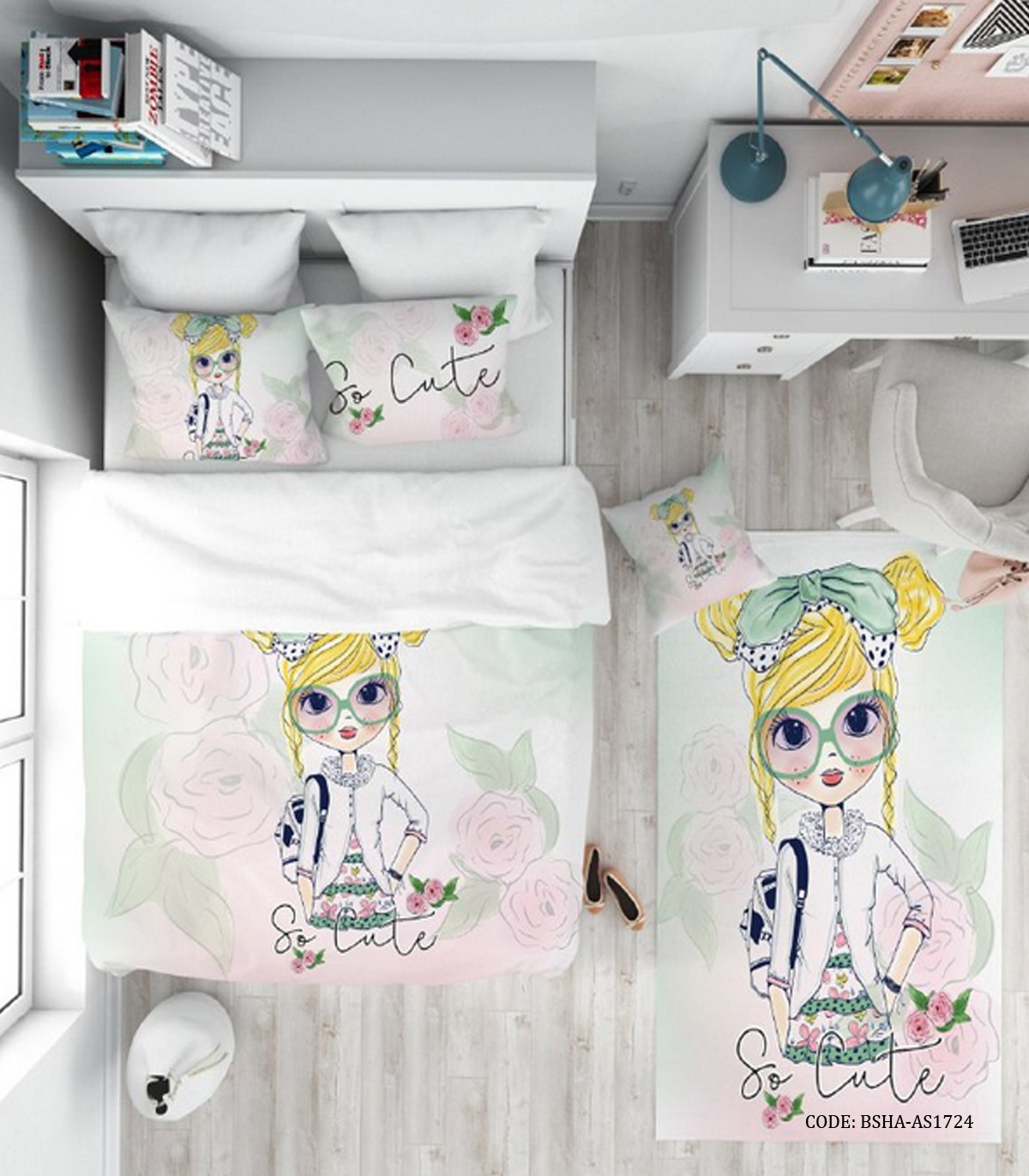 روتختی دخترانه ۴ تکه طرح دختر مدل So Cute Girl