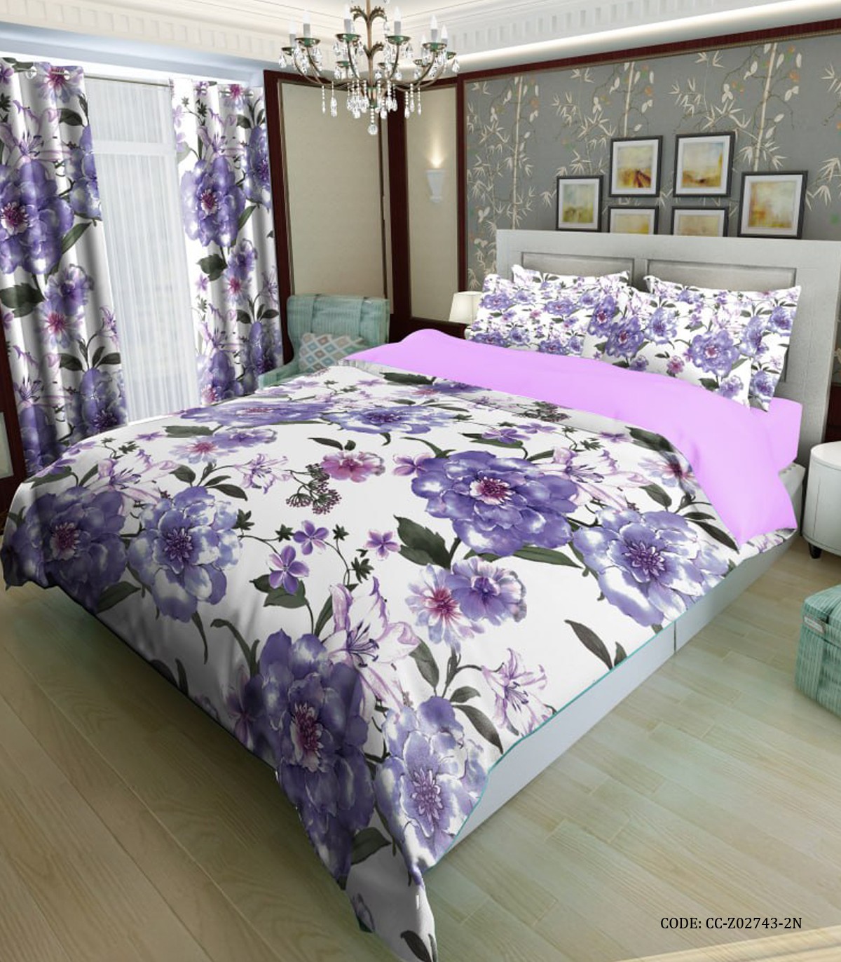 روتختی دو نفره طرح گل های بنفش مدل مینا