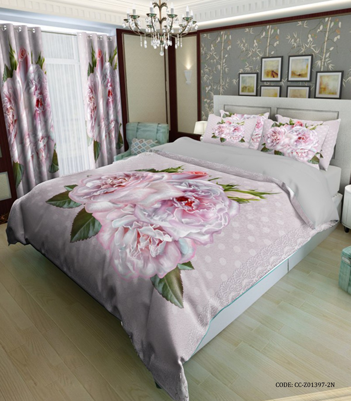 روتختی لحاف دوخت دار طرح گل رز درشت مدل الین
