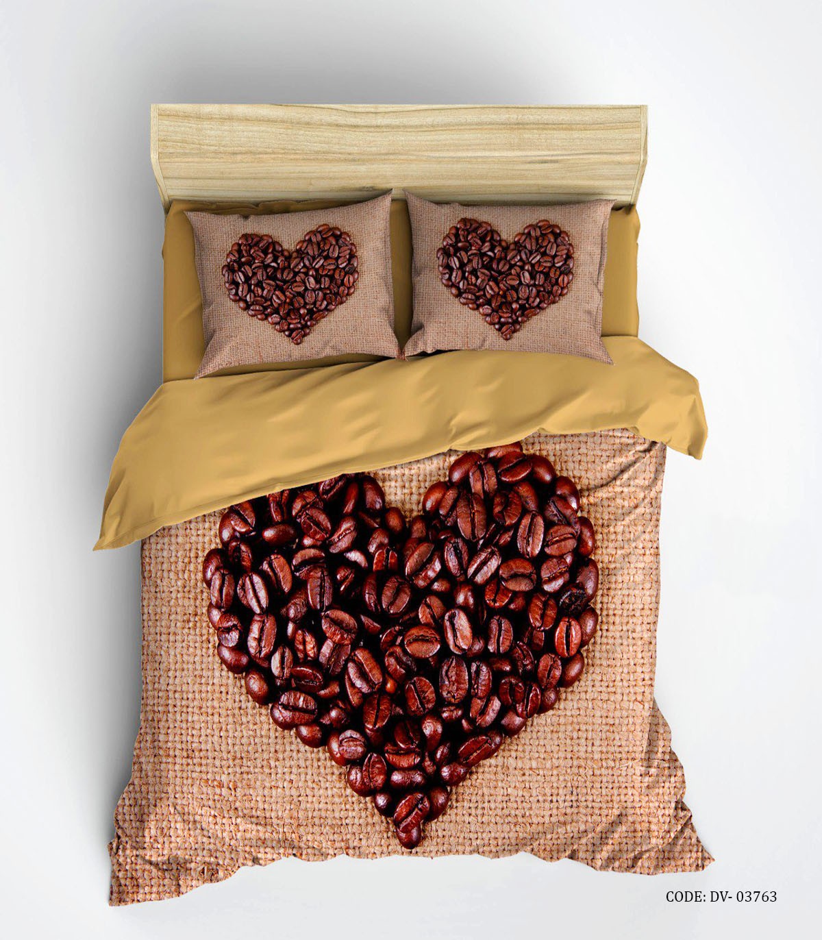 روتختی و ملحفه کشدار دو نفره طرح قهوه مدل COFFEE