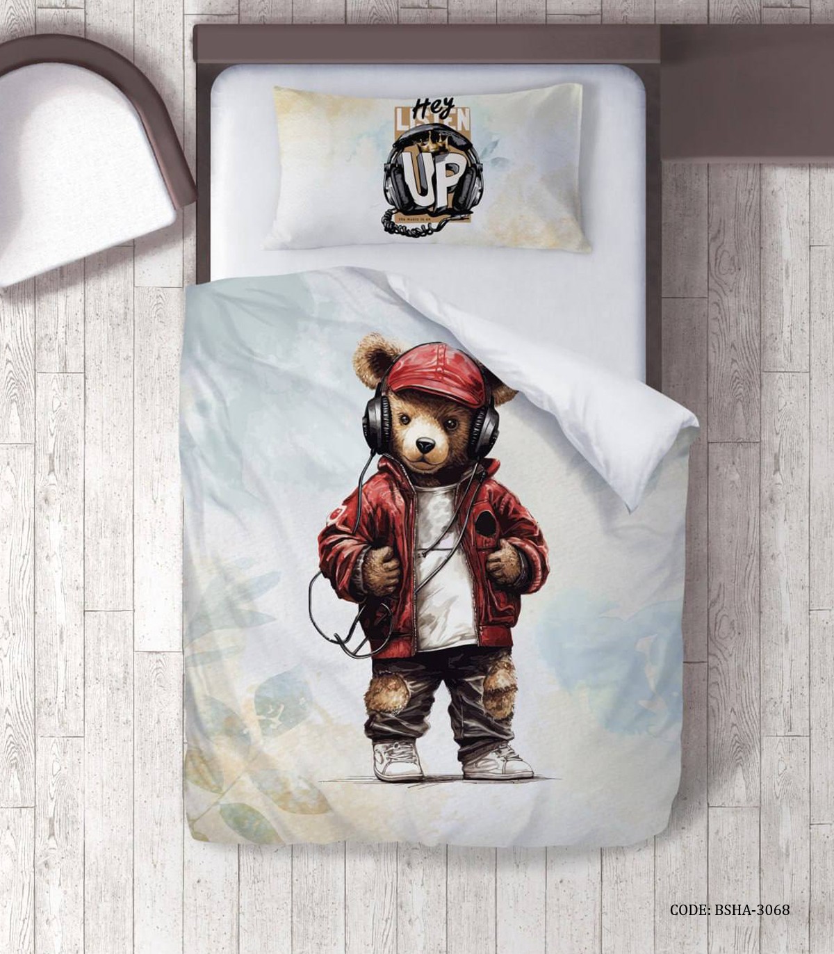 روتختی پسرانه ۴ تکه طرح خرس تدی هدفون دار مدل listen to Music
