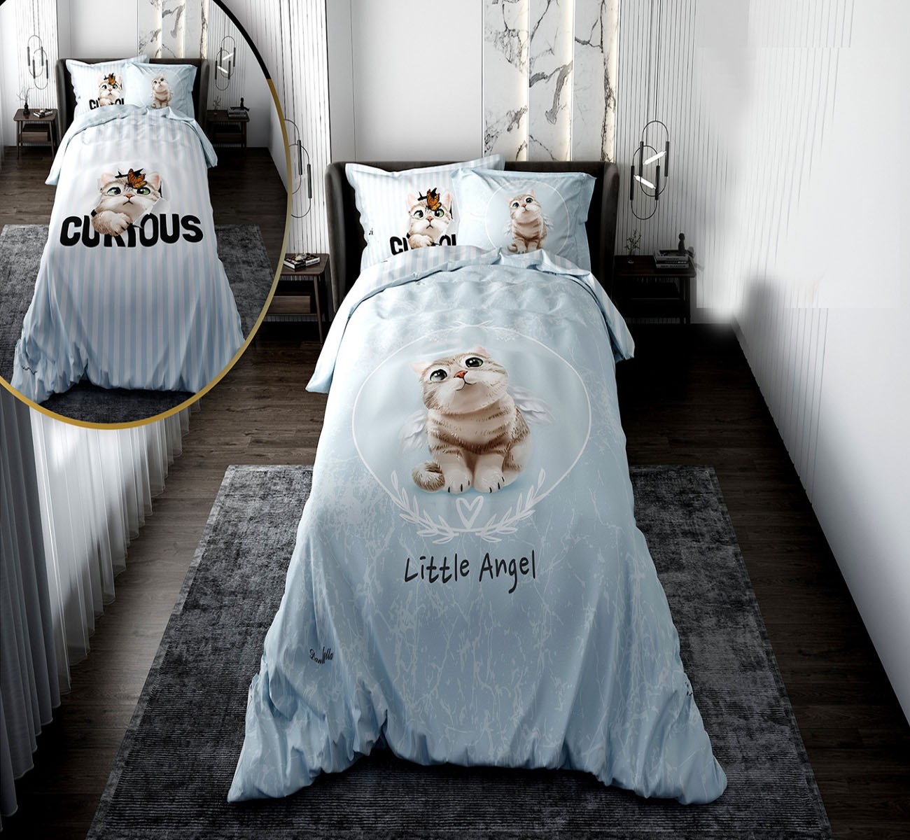 روتختی کودک دخترانه با لحاف دو رویه طرح گربه مدل Little Angle