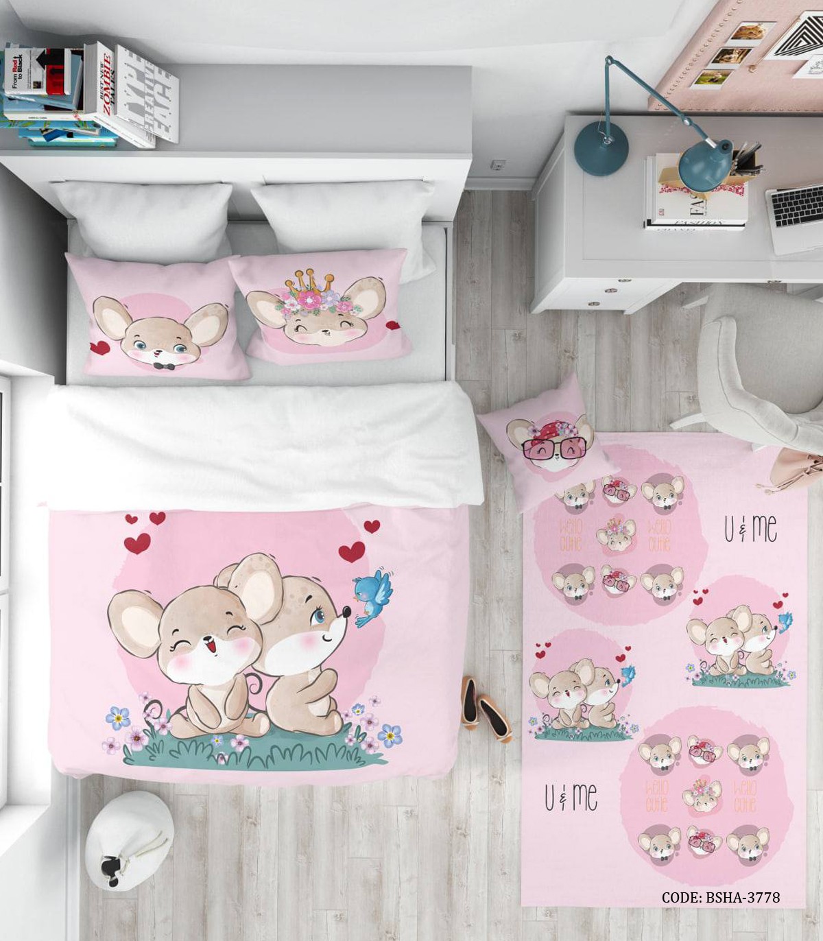 روتختی کودک دخترانه ۴ تکه طرح خرگوش مدل U Love Me