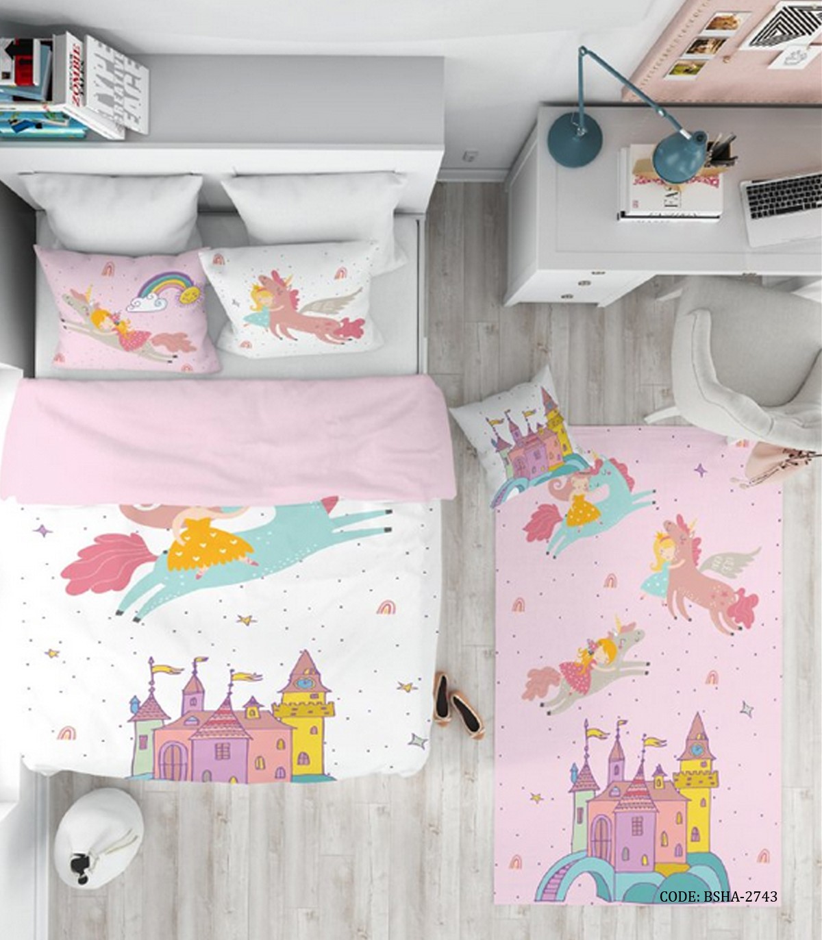 روتختی کودک دخترانه ۴ تکه طرح اسب تک شاخ یونی کورن مدل Dream City