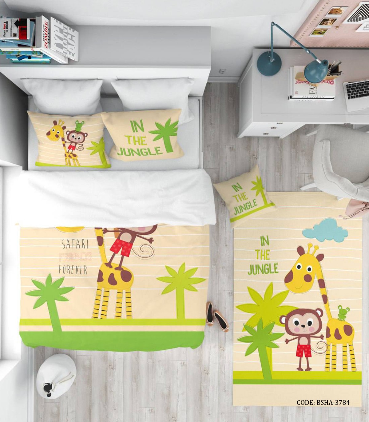 روتختی کودک پسرانه ۴ تکه طرح زرافه و میمون مدل Friends Forever