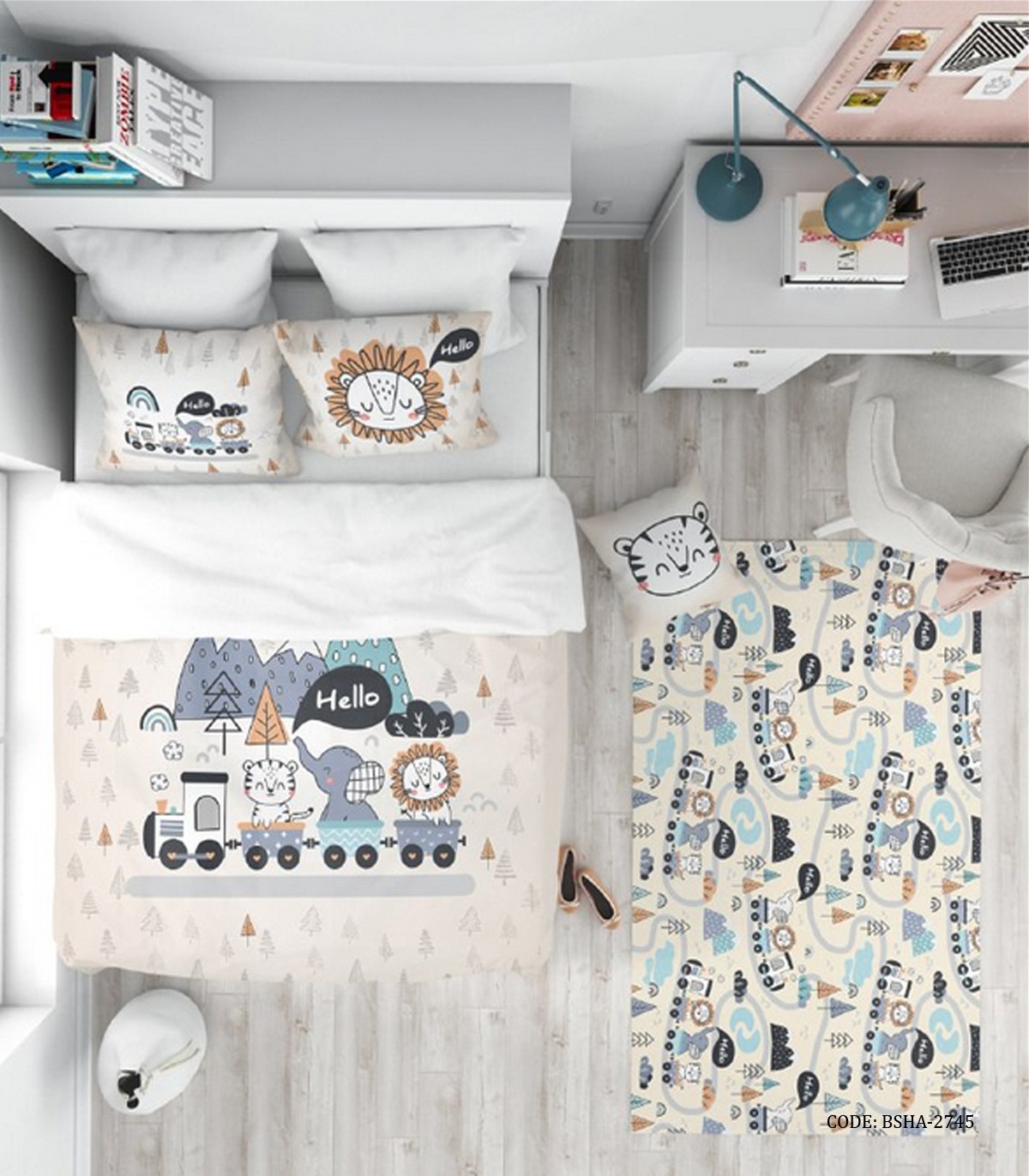 روتختی کودک پسرانه ۴ تکه طرح فیل، گربه و شیر مدل Hello