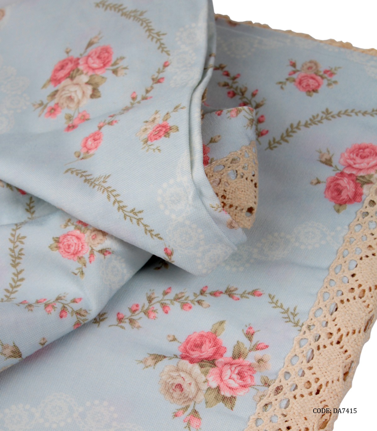 رومیزی ناهار خوری ۴ نفره گلدار آبی