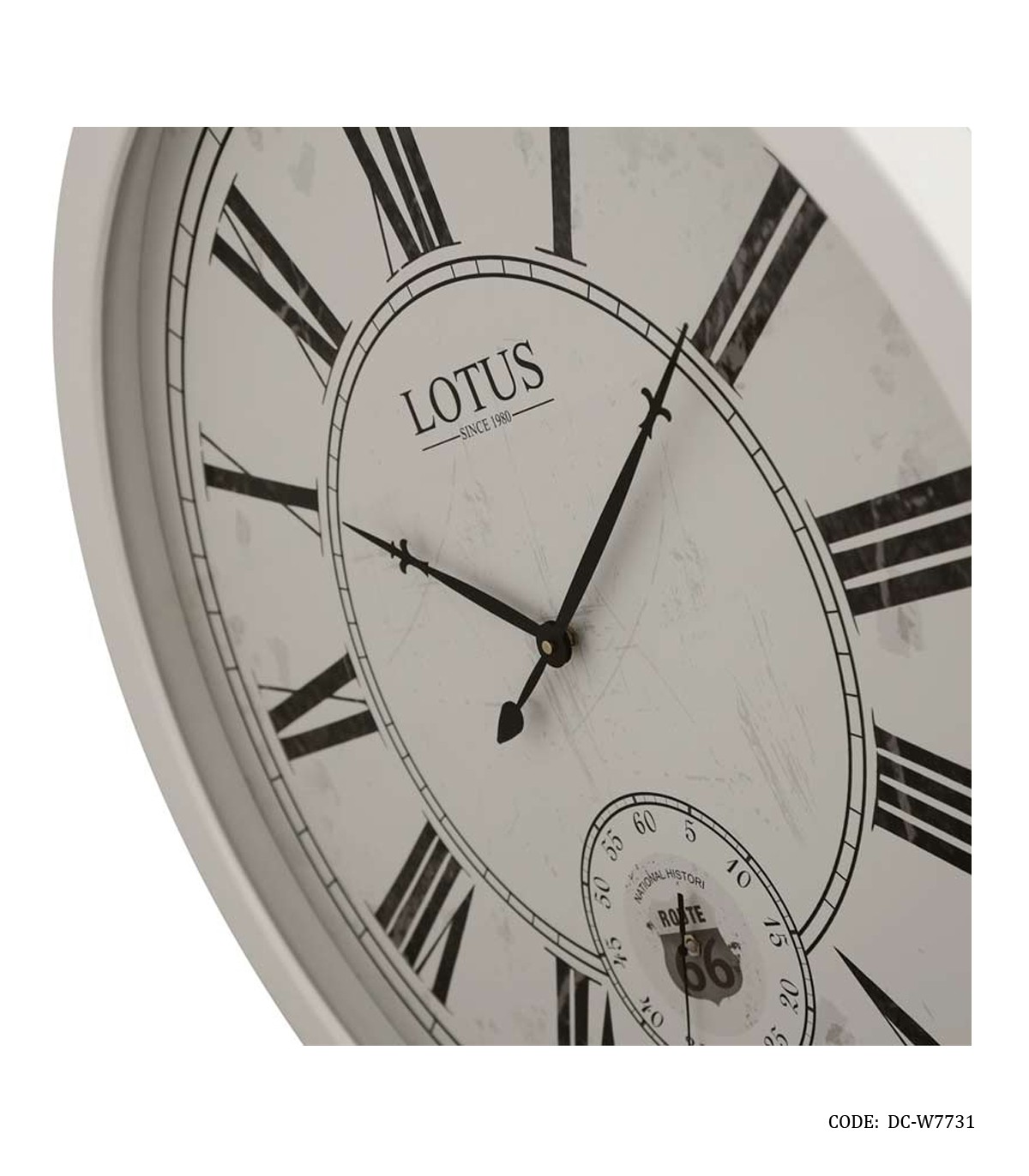 ساعت دیواری سفید چوبی گرد بزرگ لوتوس مدل BROOKLINE