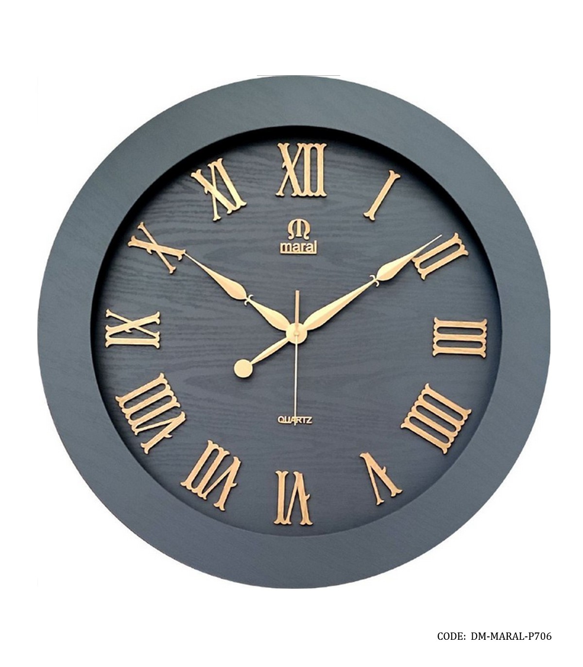 ساعت دیواری طوسی چوبی مارال مدل ۷۰۶ اعداد رومی