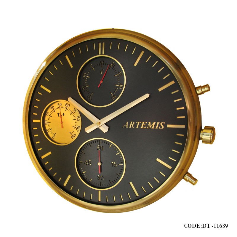 ساعت دیواری فلزی سه دکمه گلد طرح ساعت مچی