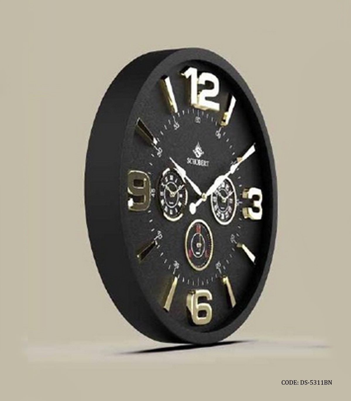 ساعت دیواری فلزی ۴ موتوره صفحه مشکی شوبرت مدل ۵۳۱۱