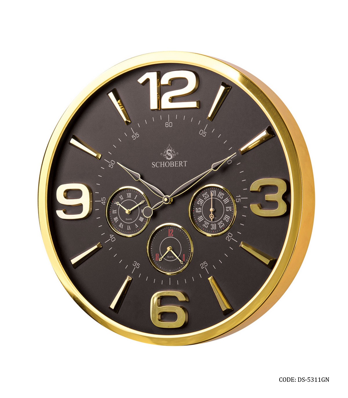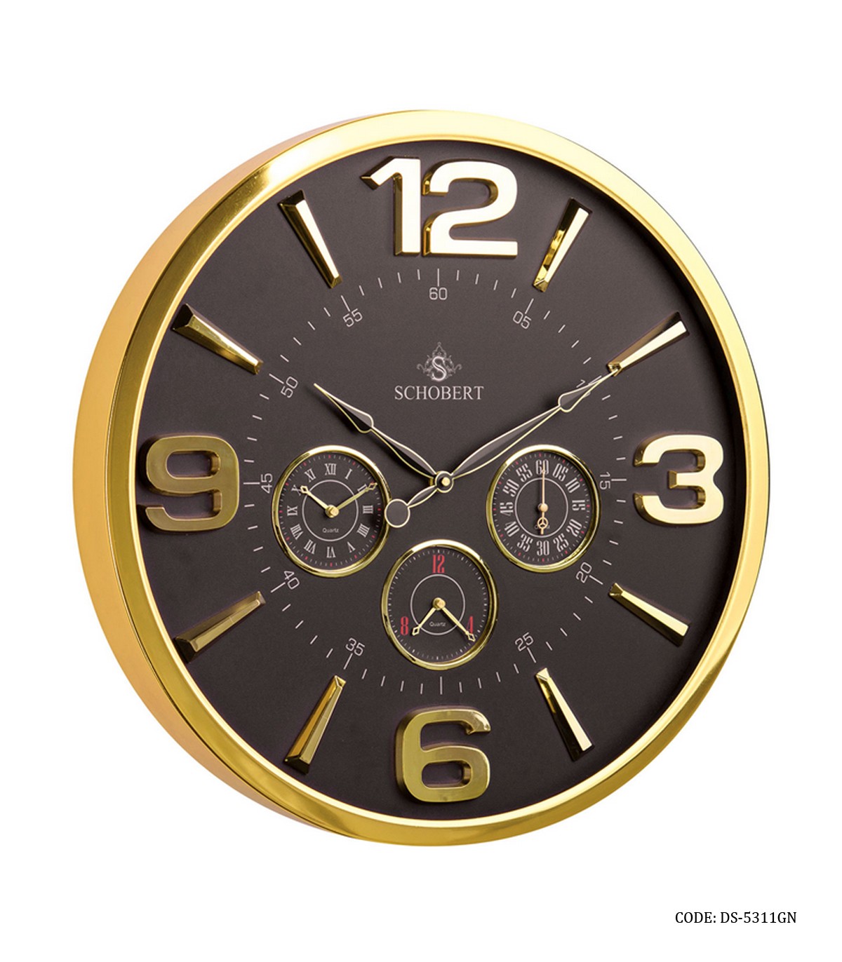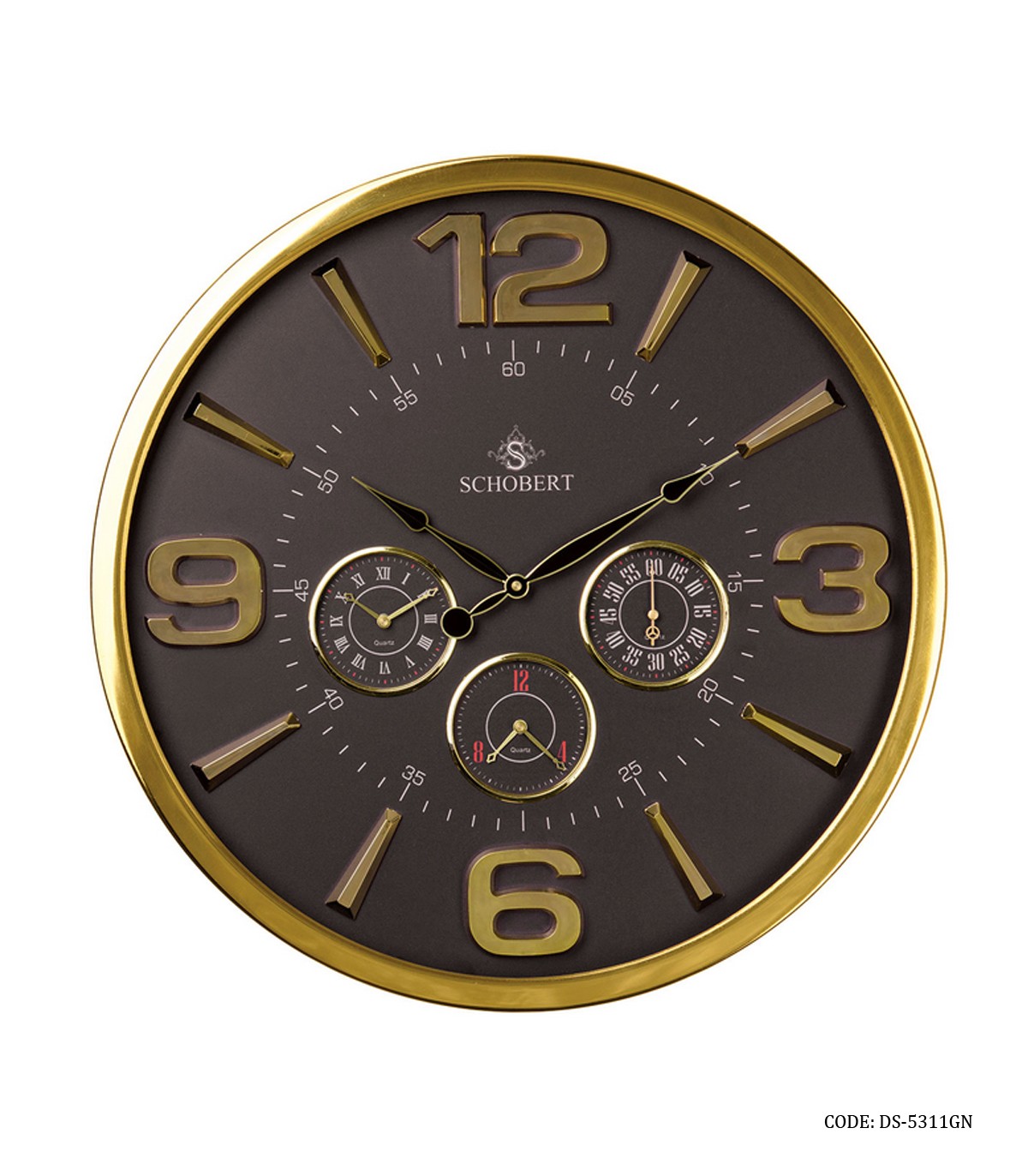 ساعت دیواری فلزی ۴ موتوره قاب طلایی شوبرت مدل ۵۳۱۱