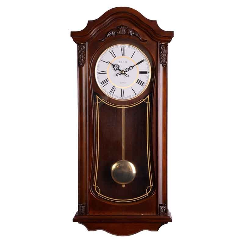 ساعت دیواری چوبی پاندول دار سالهاست که زینت بخش منازل اکثر ما ایرانی هاست. ساعت دیواری پاندول دار جزء محبوب ترین مدل هایی است که هیچ وقت قدیمی نمی شود و همیشه طرفداران خود را دارد.ساعت دیواری چوبی پاندول دار مدل ترمه دارای موتور آرام گرد است. زنگ این ساعت دیواری پاندول دار شامل سه ملودی است که به سلیقه شما قابل انتخاب است. موتور آن با باطری کار می کند و جنس بدنه آن از چوب است.