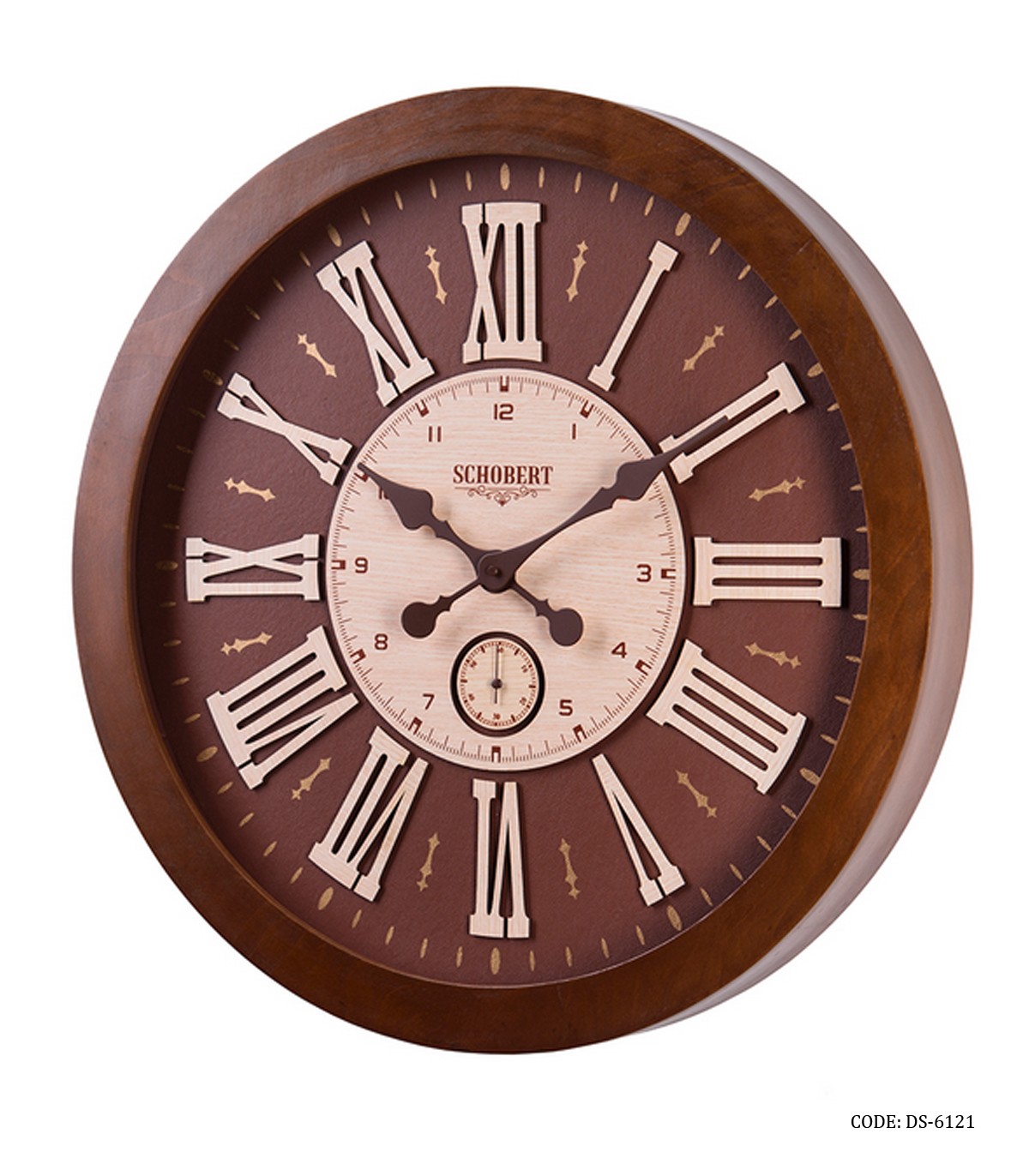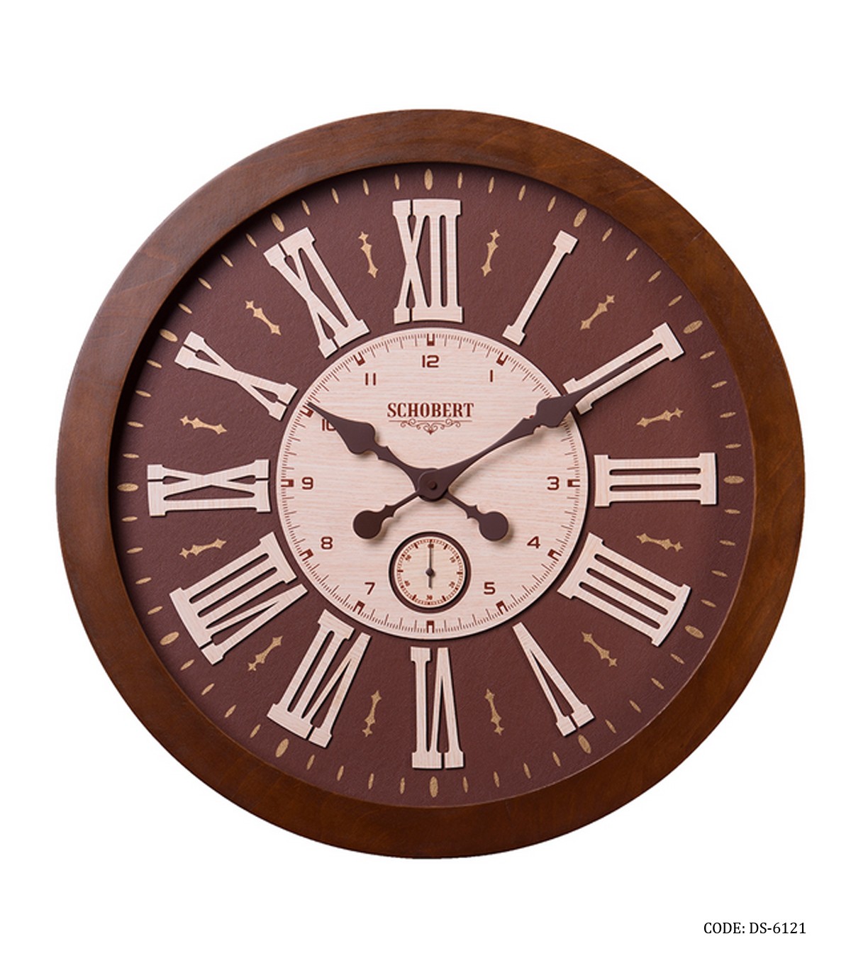 ساعت دیواری چوبی گرد اعداد رومی شوبرت مدل ۶۱۲۱