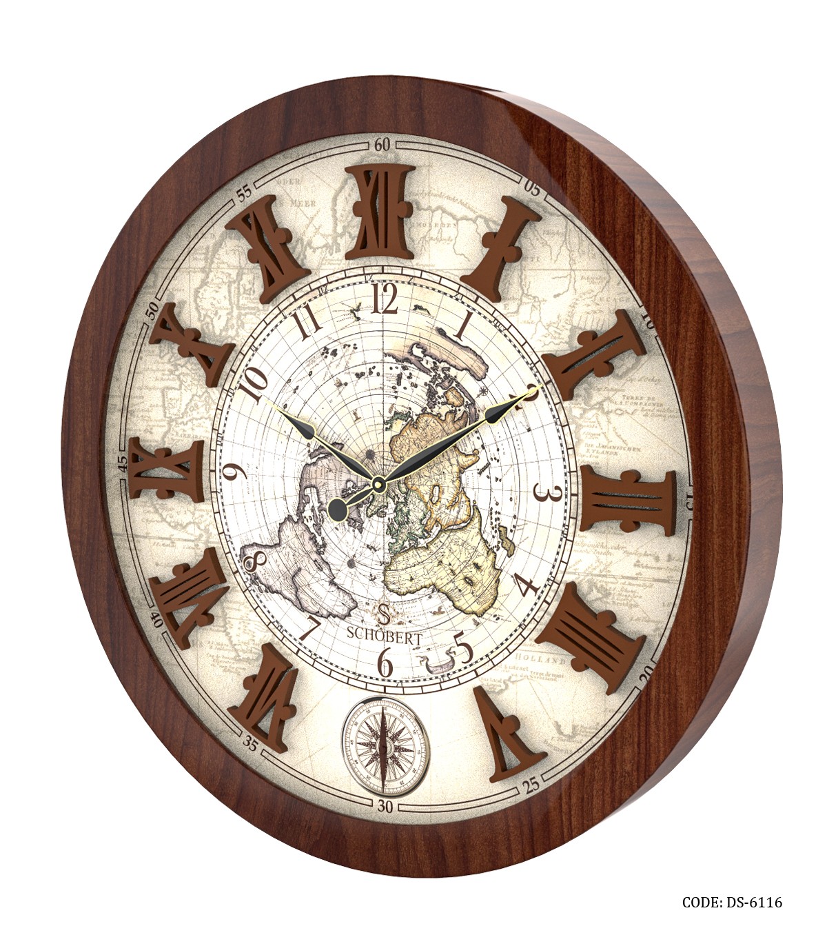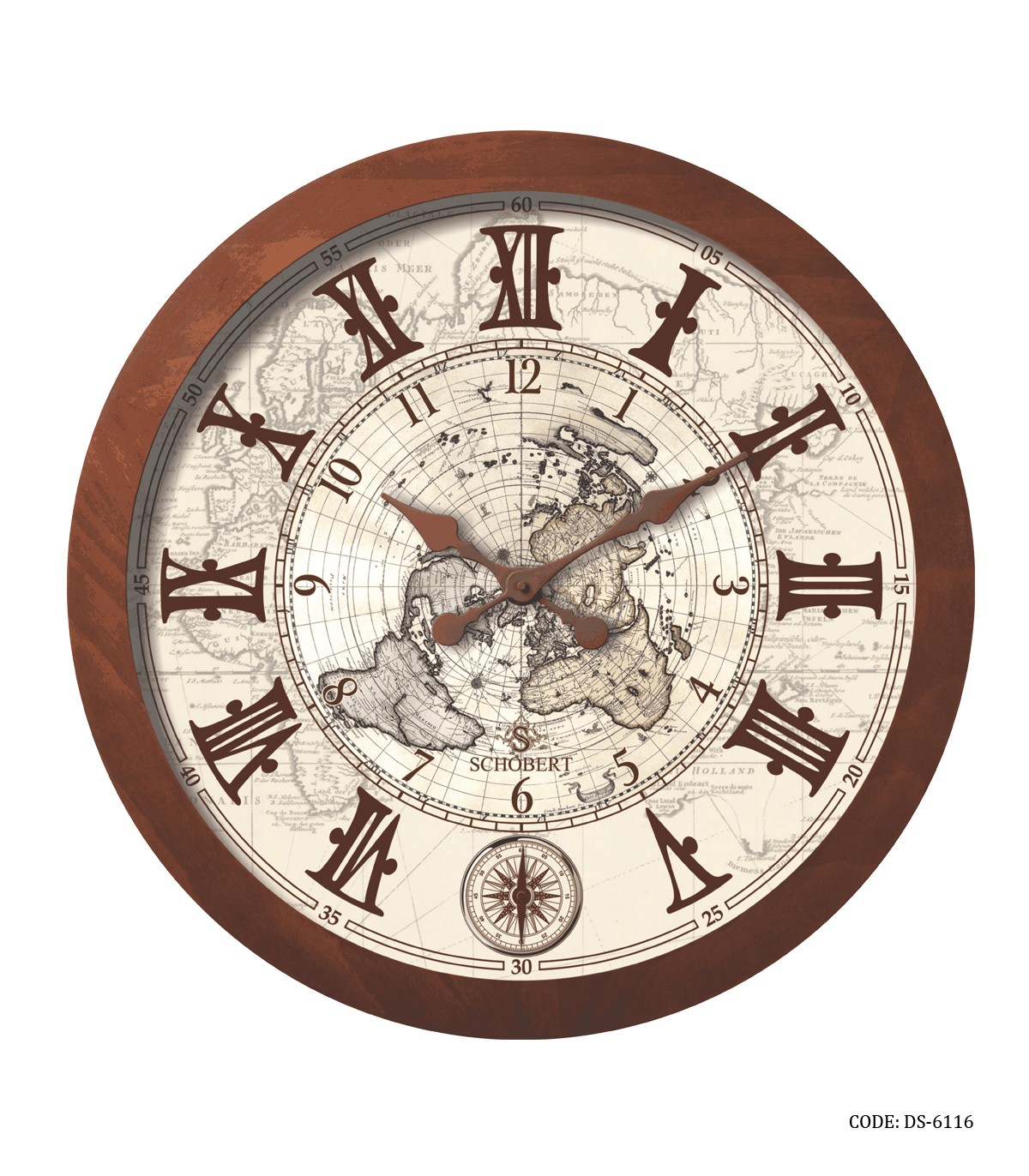 ساعت دیواری چوبی گرد با طرح نقشه جهان شوبرت مدل ۶۱۱۶