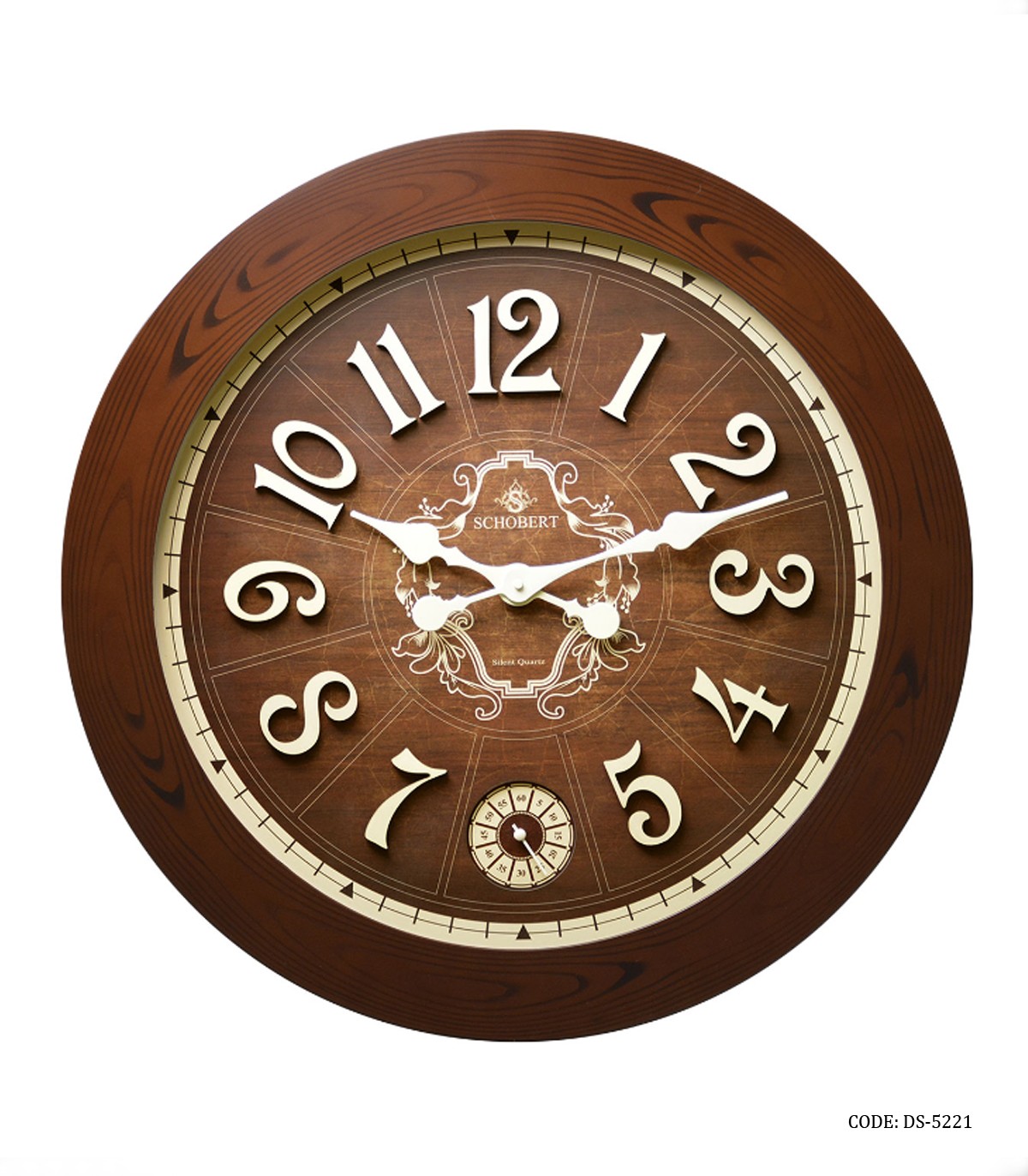 ساعت دیواری گرد قهوه ای قاب پلاستیکی شوبرت مدل ۵۲۲۱