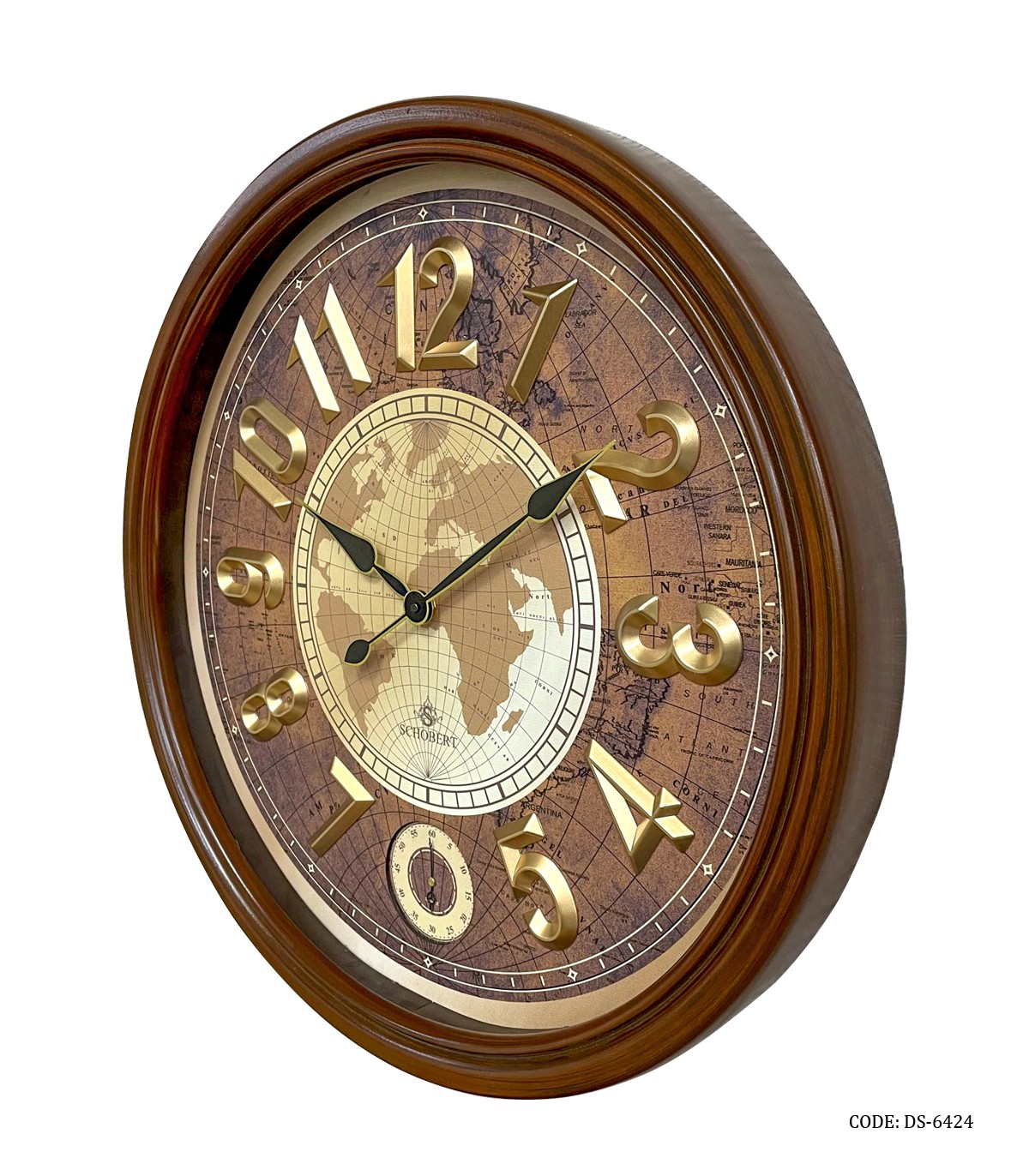 ساعت دیواری گرد چوبی اعداد طلایی شوبرت مدل ۶۴۲۴