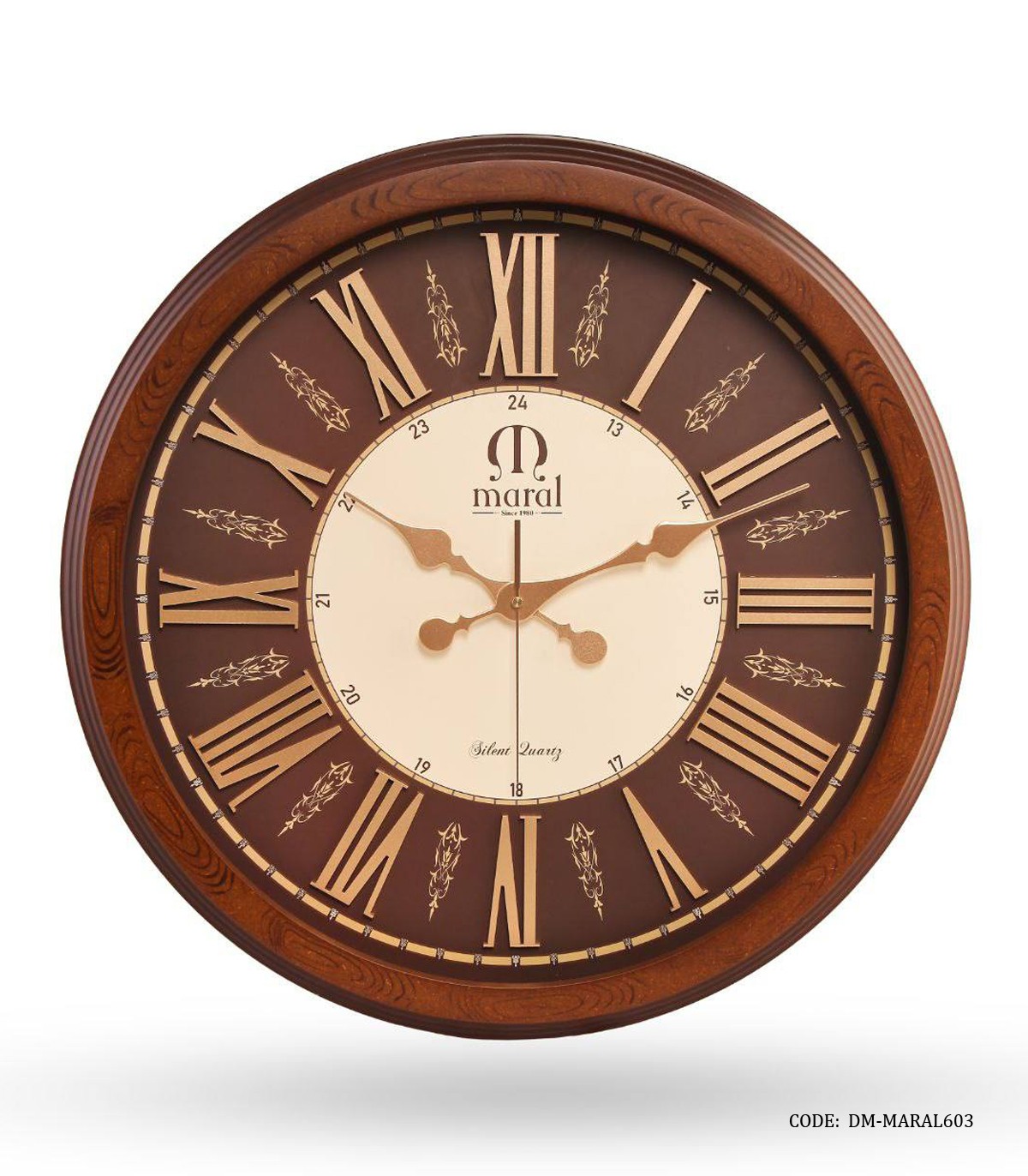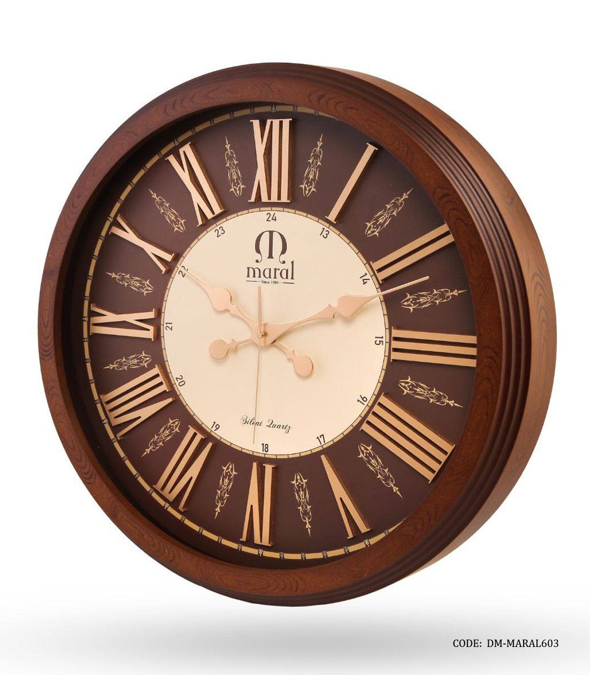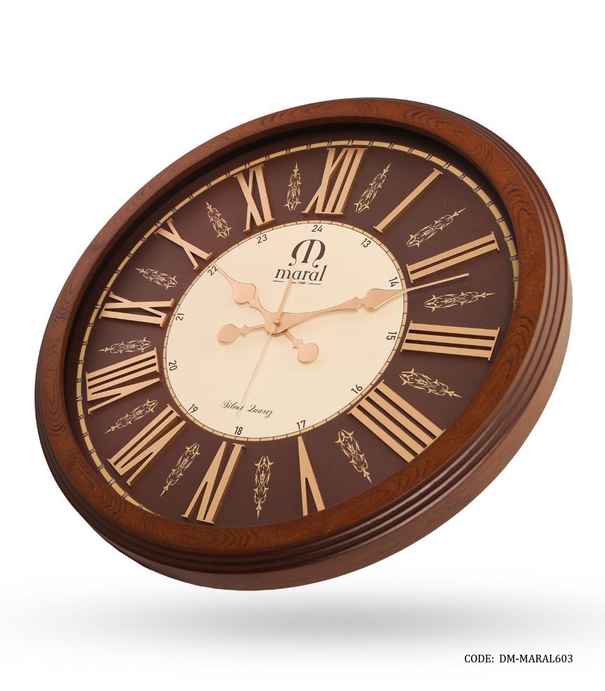 ساعت دیواری گرد چوبی مارال اعداد رومی مدل Silent