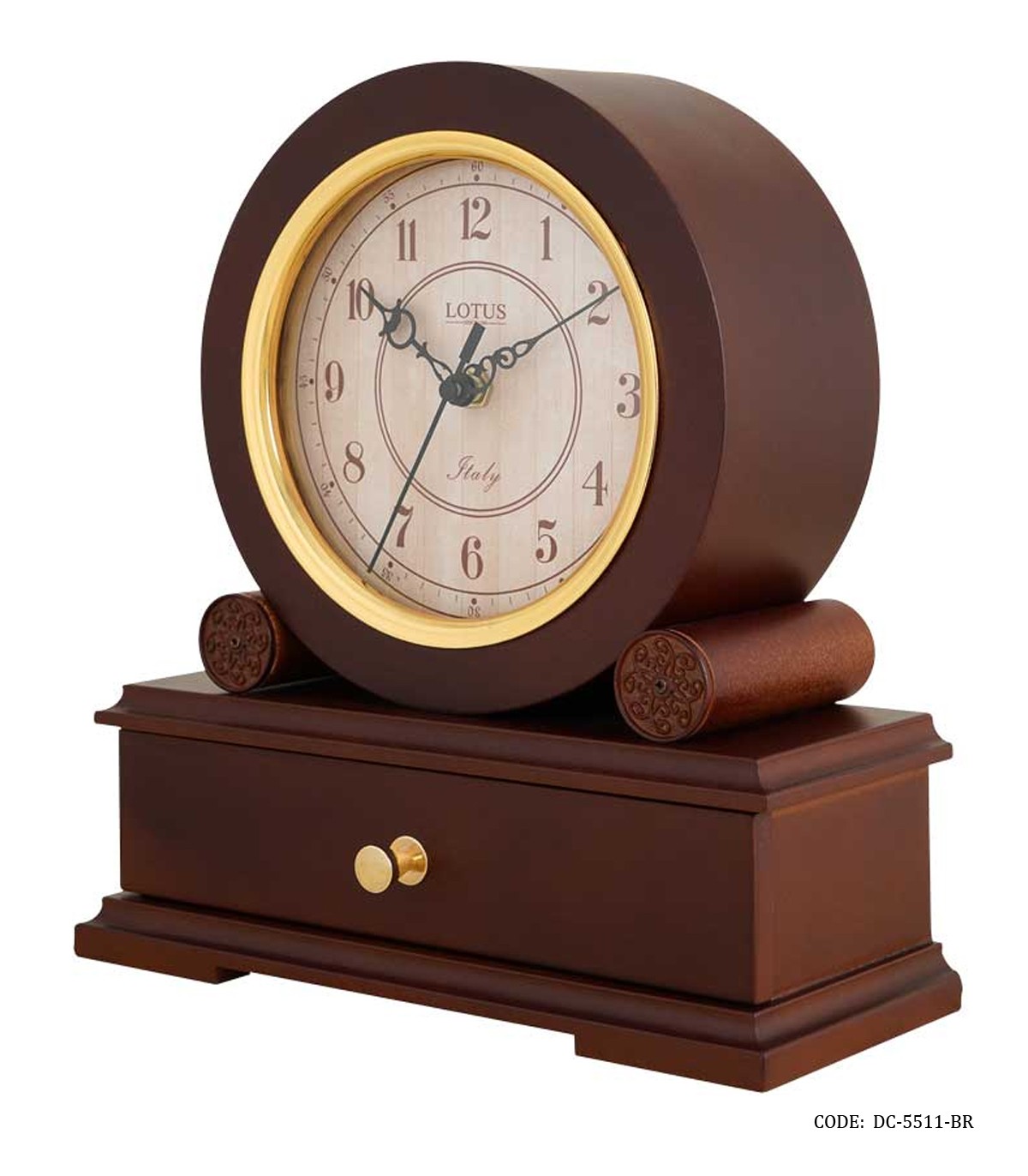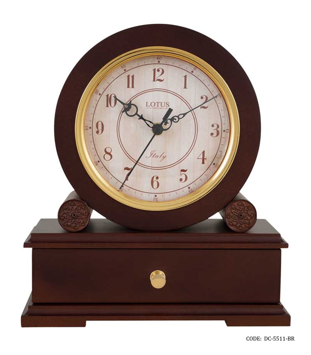 ساعت رومیزی چوبی لوکس کشودار لوتوس مدل DARCY قهوه ای