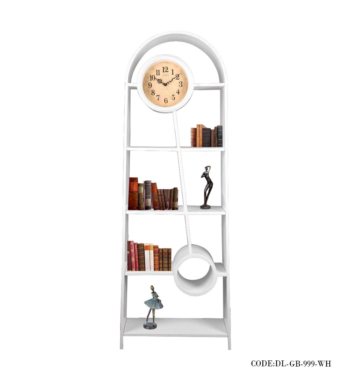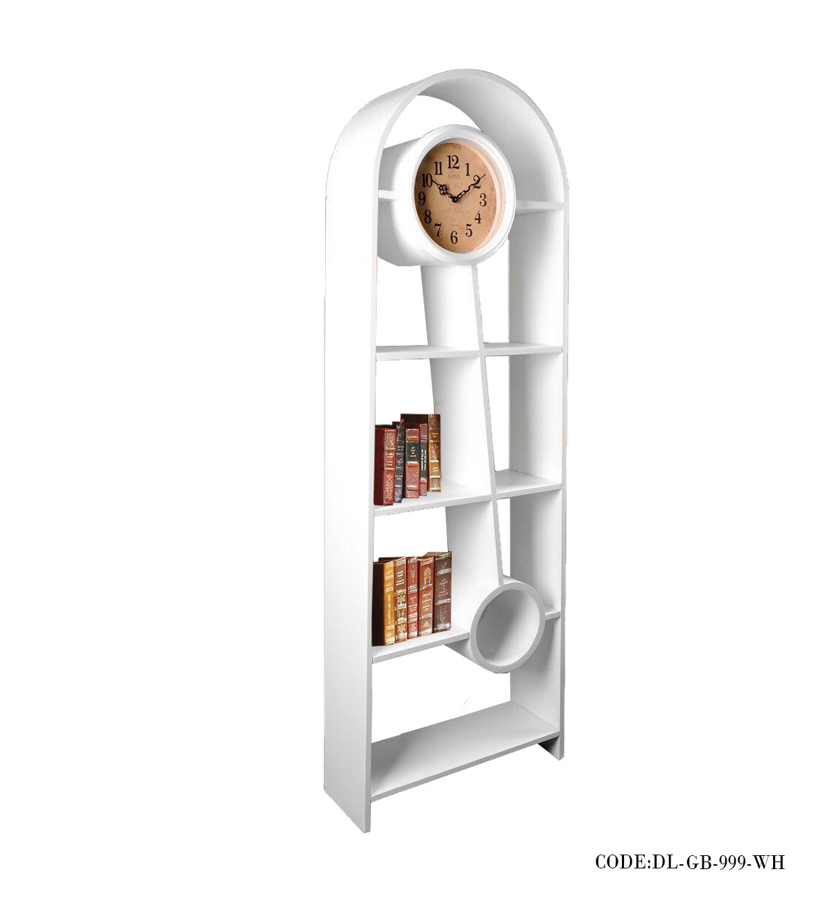 ساعت مبله چوبی و قفسه مدل ترکیبی رنگ سفید