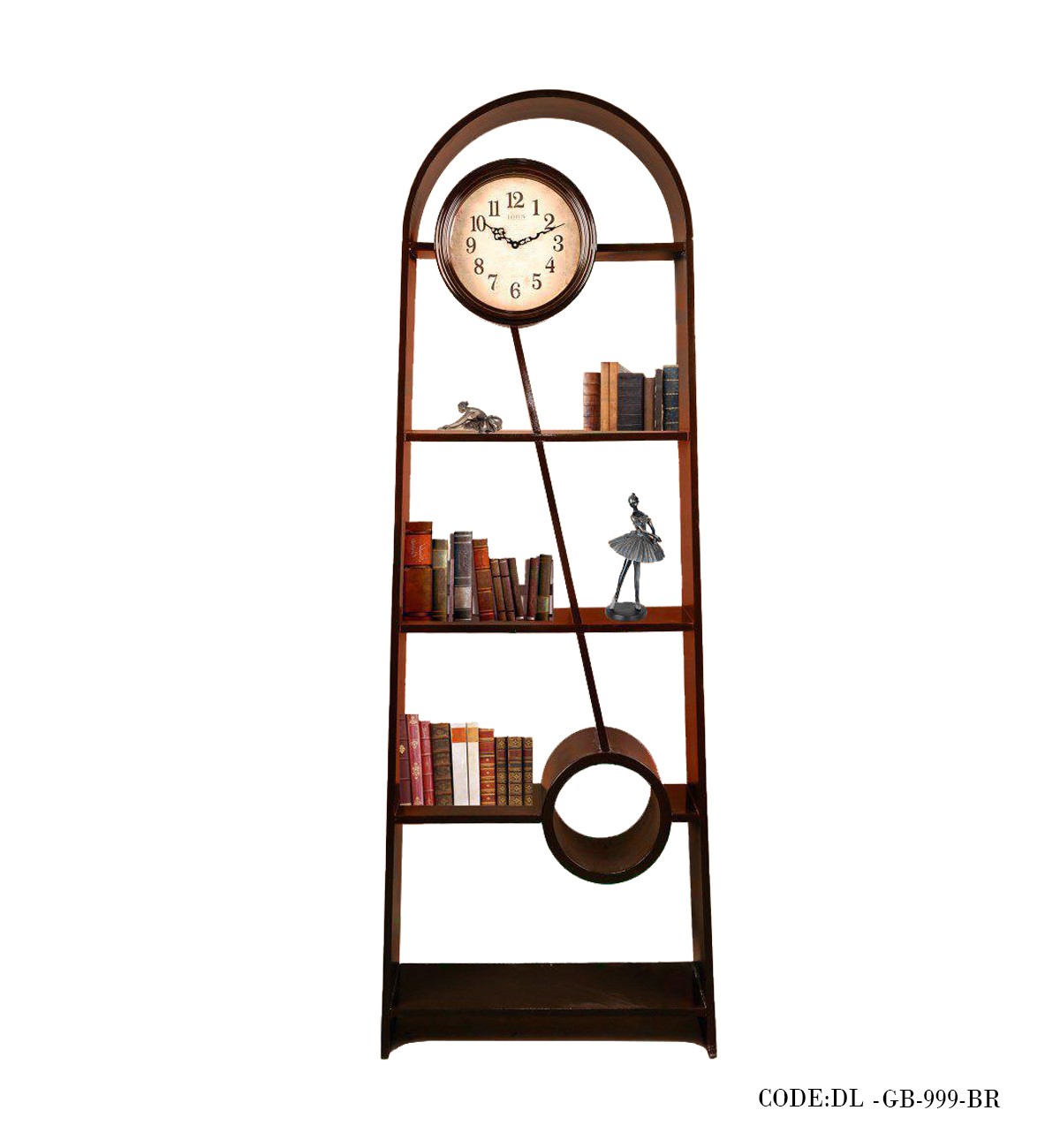 ساعت مبله چوبی و قفسه مدل ترکیبی رنگ قهوه ای