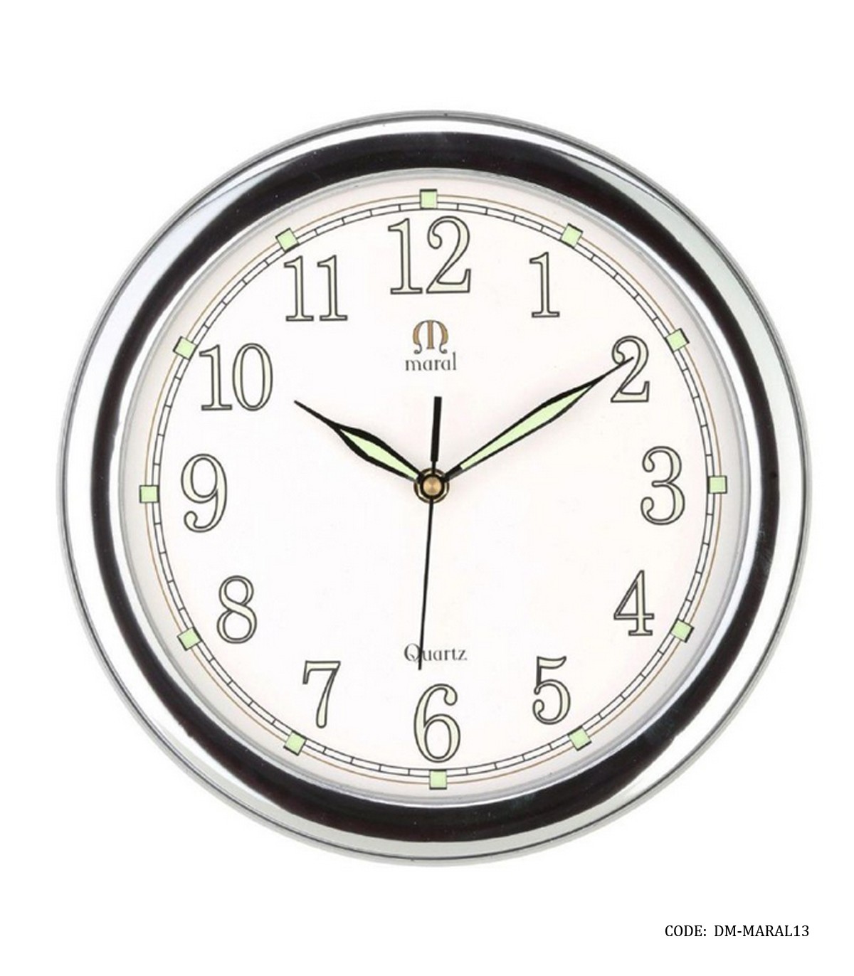 ساعت گرد دیواری قاب پلاستیکی مارال صفحه شب نما سیلور