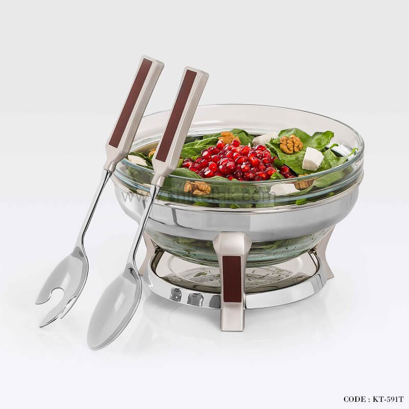 - ظرف سالادخوری و قاشق و چنگال سالاد