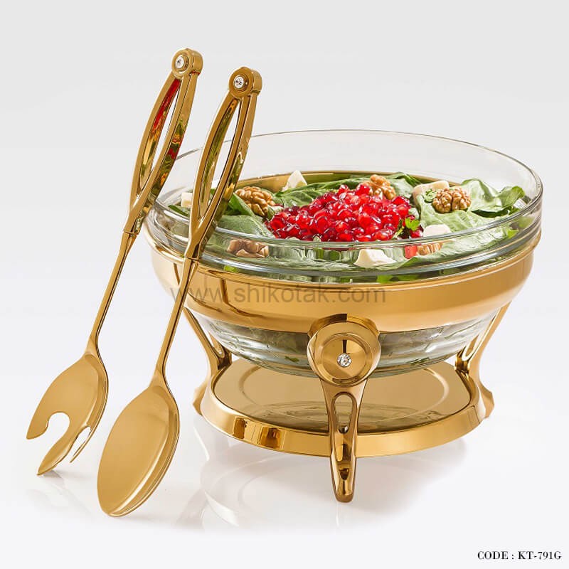 سالاد خوری پایه دار طلایی طرح نگین دار