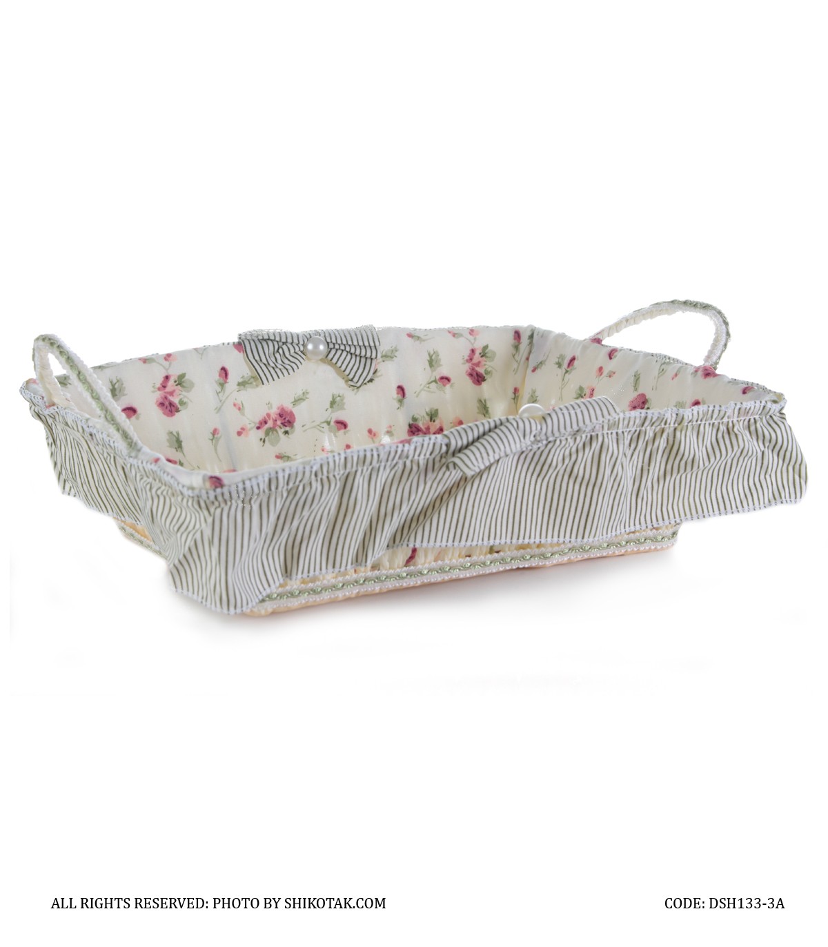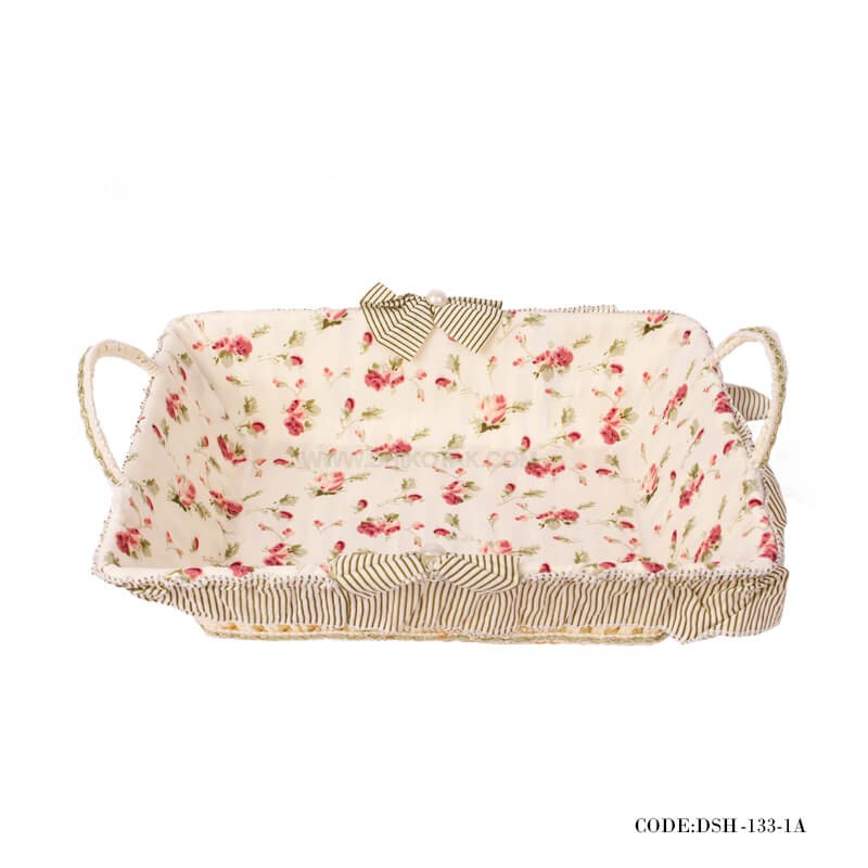 سبد نان حصیری گلدار طرح Pink Rose