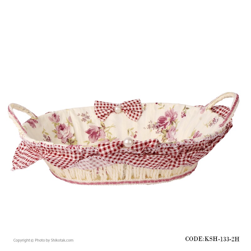 سبد نان و سبزی حصیری صورتی بیضی طرح Rose