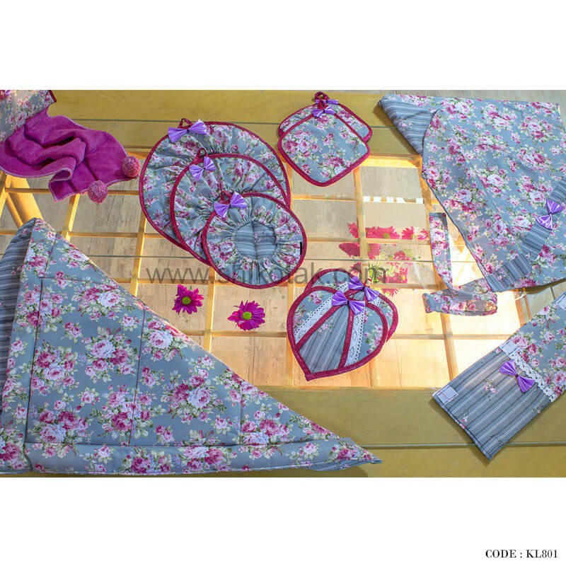 شامل | 18 تکه: 1 عدد نمگیر ظرف،1 عدد پیش بند،3 عدد دمکنی کش دار،2 عدد دستکش فر،2 عدد دستگیره قلبی، 2 عدد دستگیره مربع،1 عددکیسه نان، 1 عدد جانونی رومیزی، 1 عدد کیسه سبزی، 1 عدد جاسبزی رومیزی، 1 عدد حوله، 2 ع |