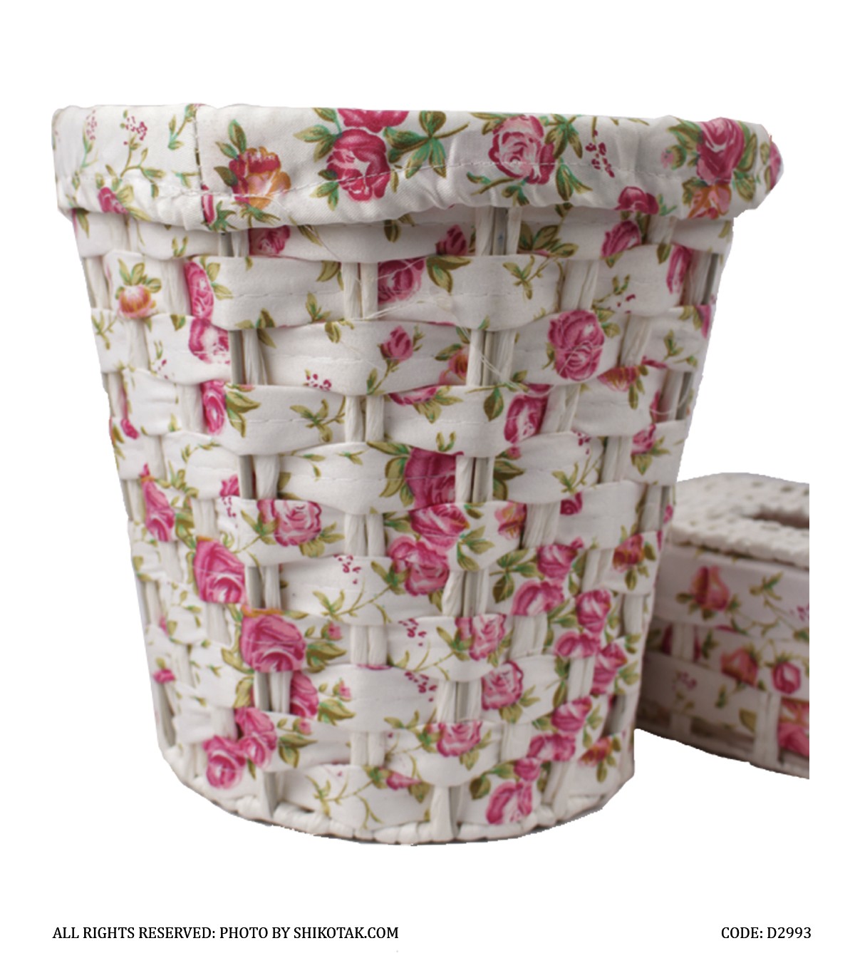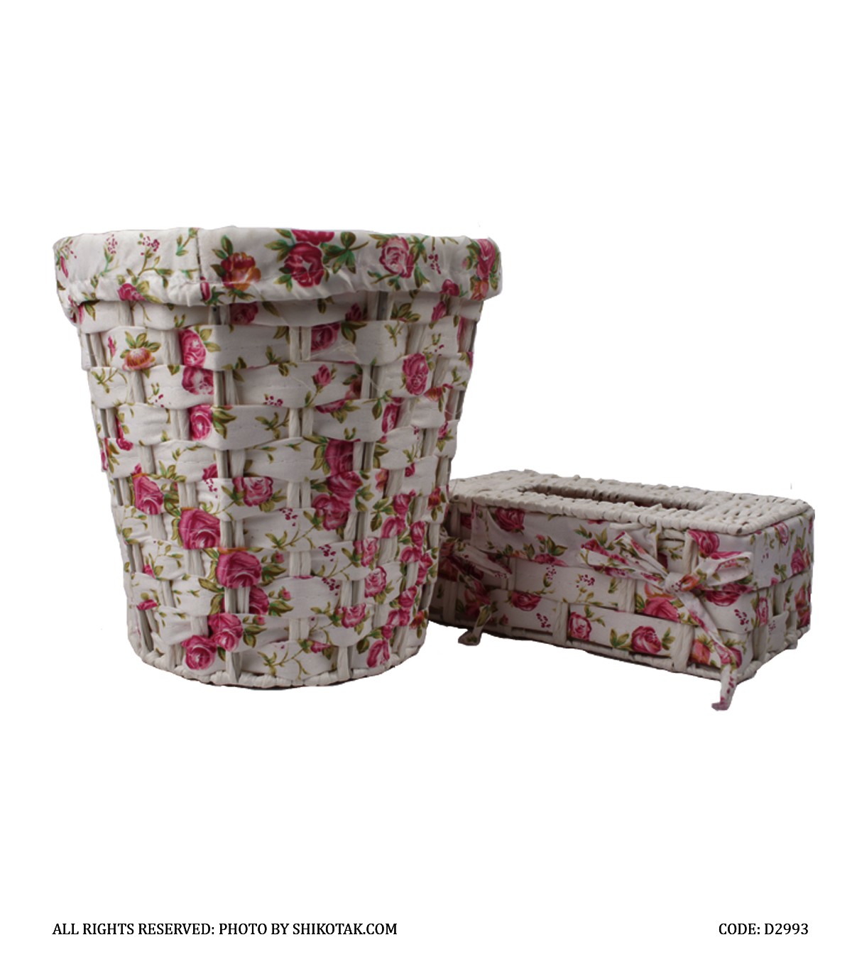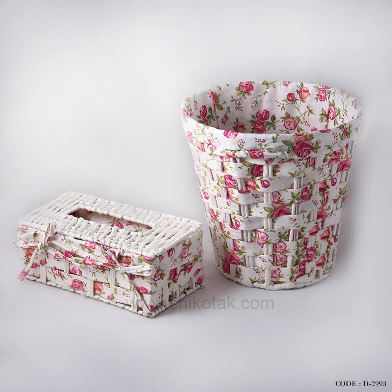 ست جادستمال و سطل زباله سفید طرح شطرنجی پارچه