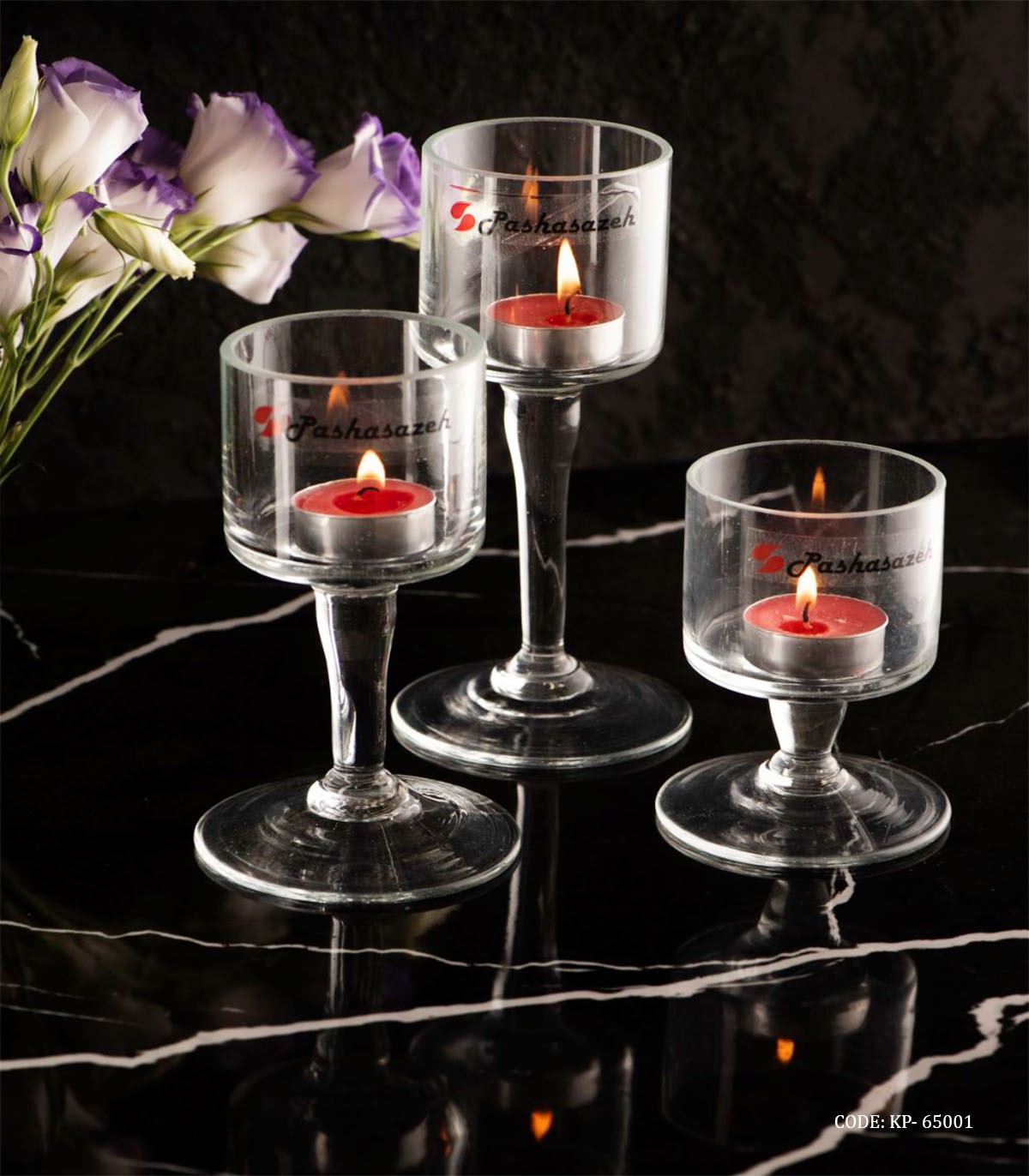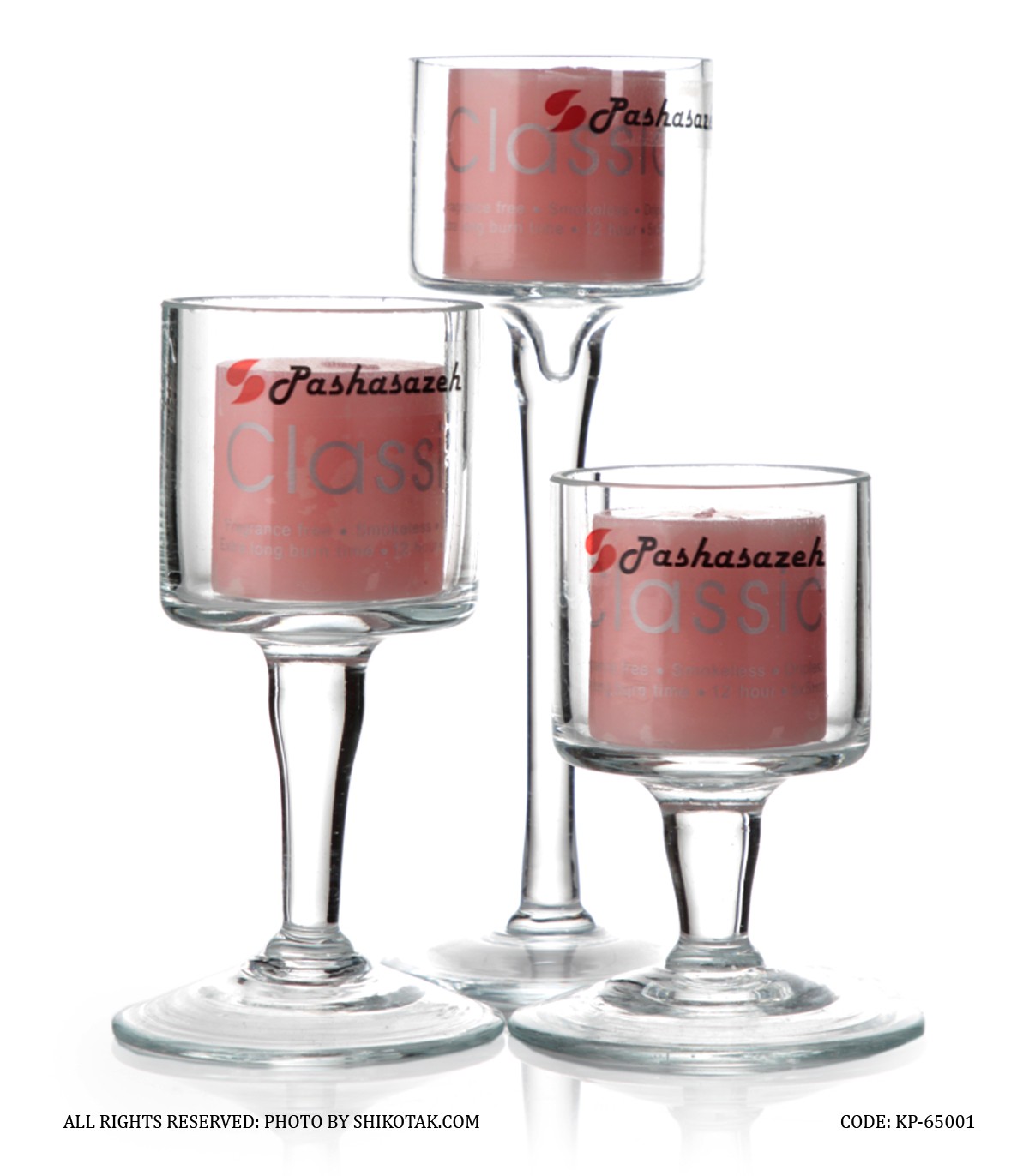 ست جاشمعی شیشه ای پایه دار سه عددی ملکا