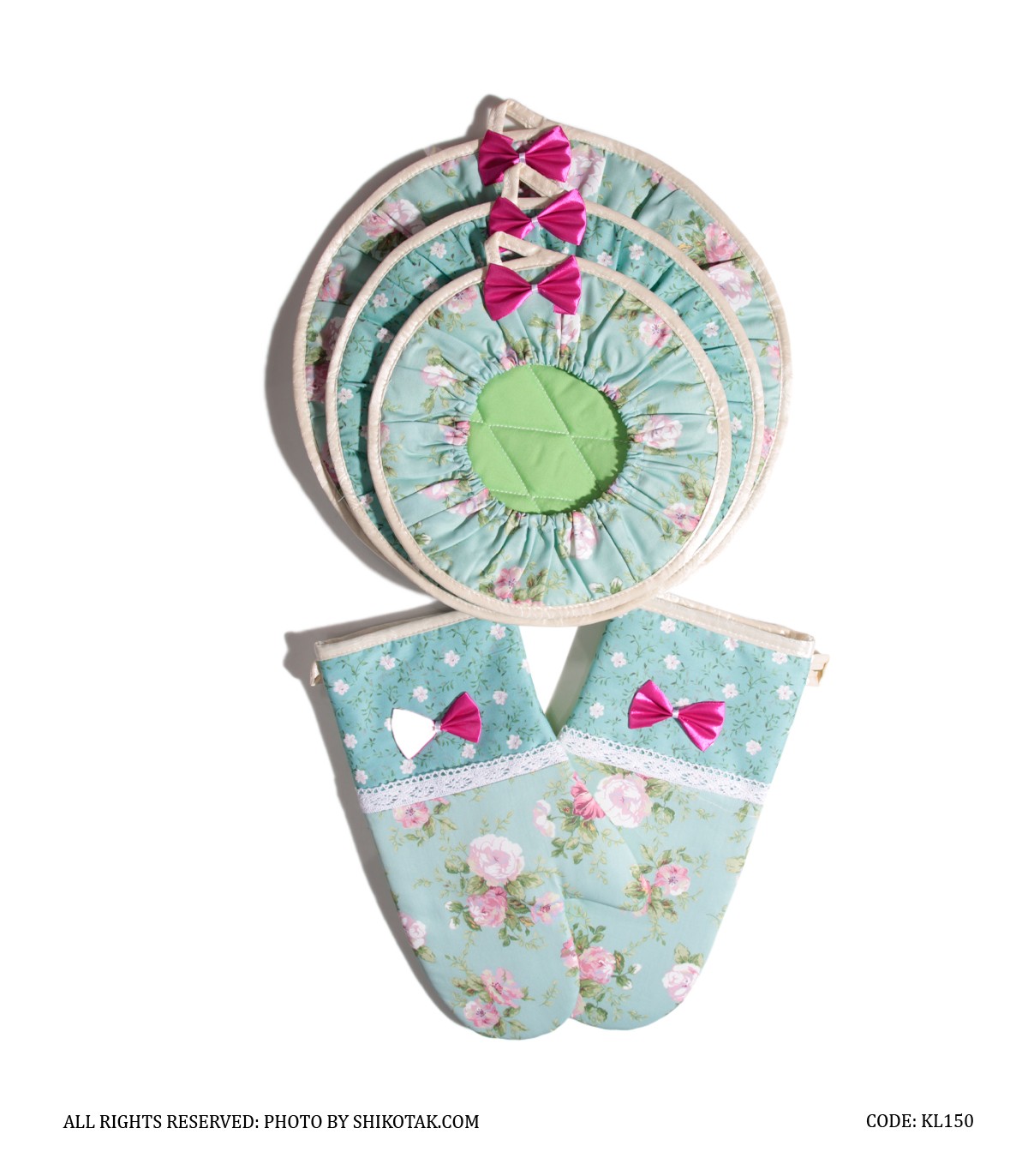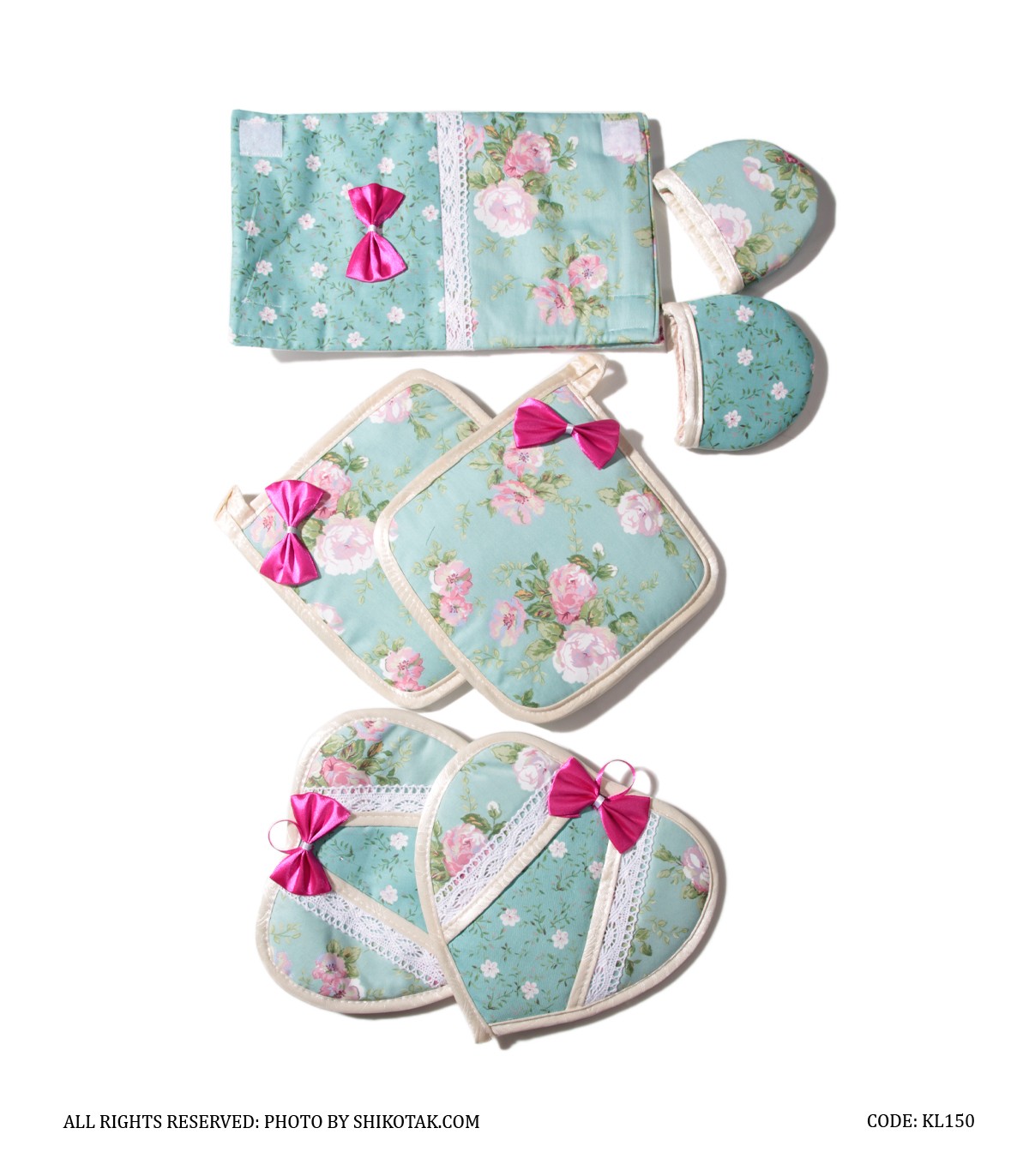 - محتویات بسته شامل: نمگیر ظرف-پیش بند-دمکنی کش داز-دستکش فر-دستگیره قلبی-دستگیره مربع-کیسه نان-جا نونی رومیزی-کیسه سبزی-جا سبزی رومیزی-حوله-دستگیره یخچال