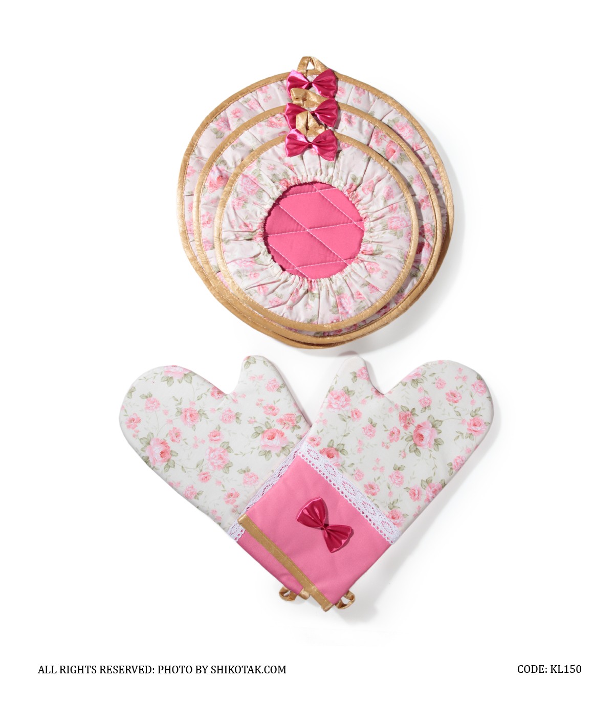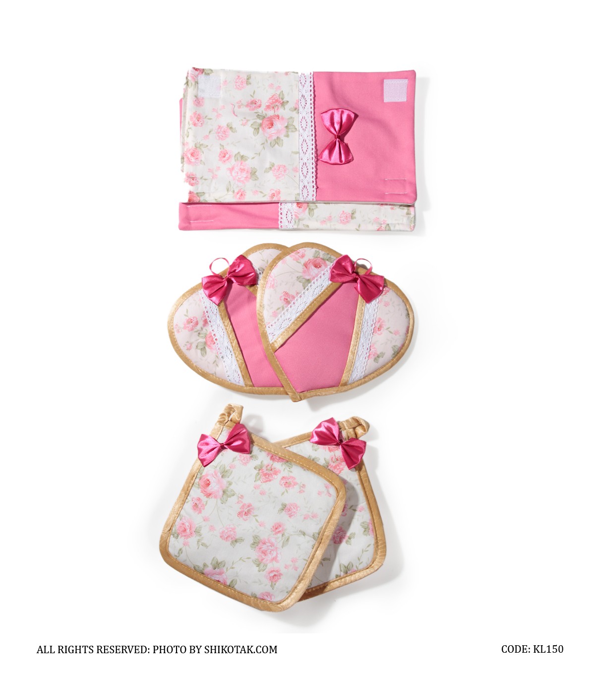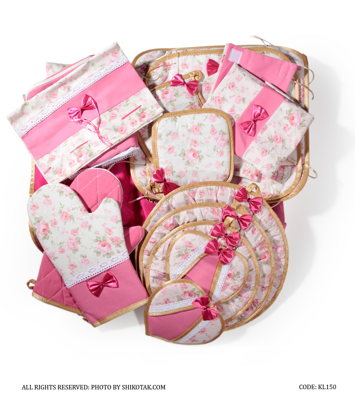 - محتویات بسته شامل: نمگیر ظرف-پیش بند-دمکنی کش داز-دستکش فر-دستگیره قلبی-دستگیره مربع-کیسه نان-جا نونی رومیزی-کیسه سبزی-جا سبزی رومیزی-حوله-دستگیره یخچال