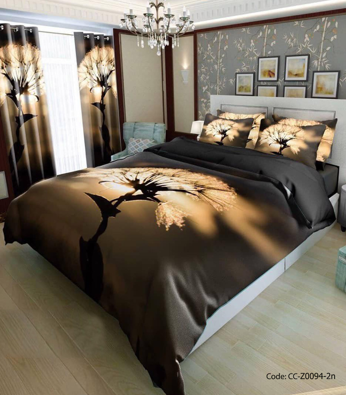 ست روتختی دونفره مشکی طلایی طرح تک درخت در غروب