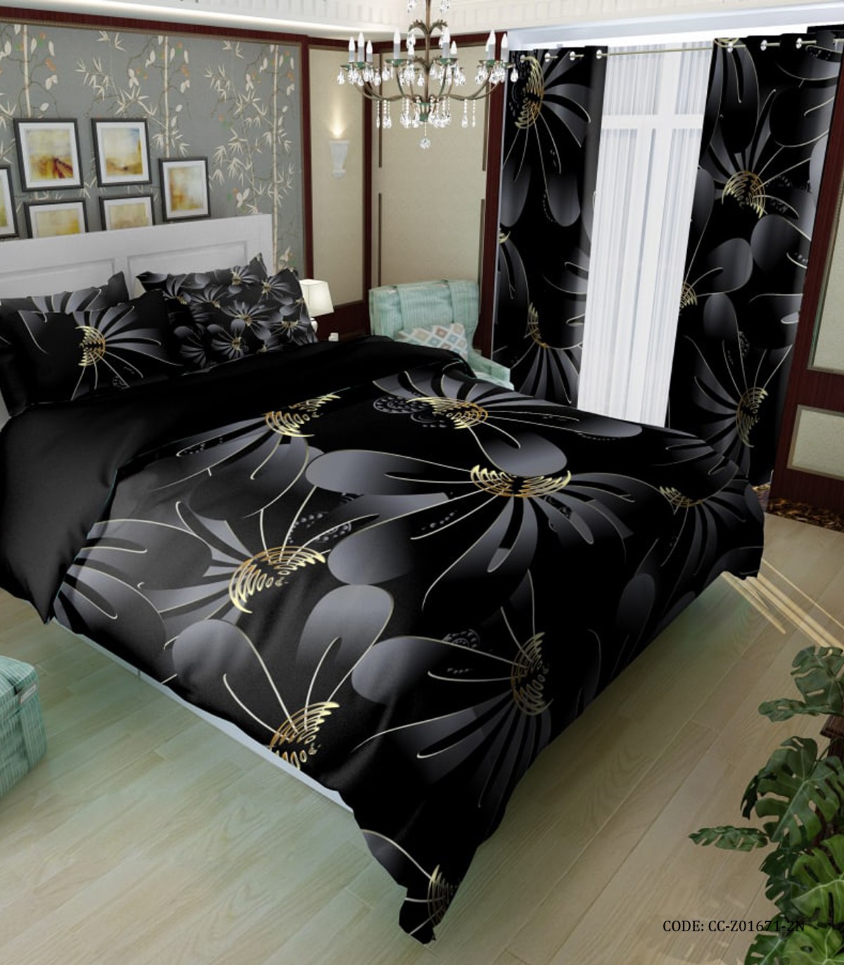 ست روتختی لحاف دوختدار مشکی طرح گل مدل زانکو