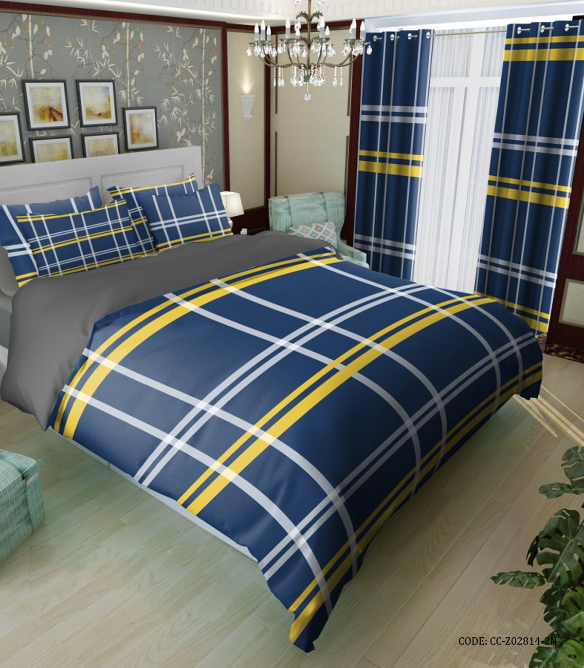 ست روتختی پسرانه طرح چهارخونه سورمه ای زرد