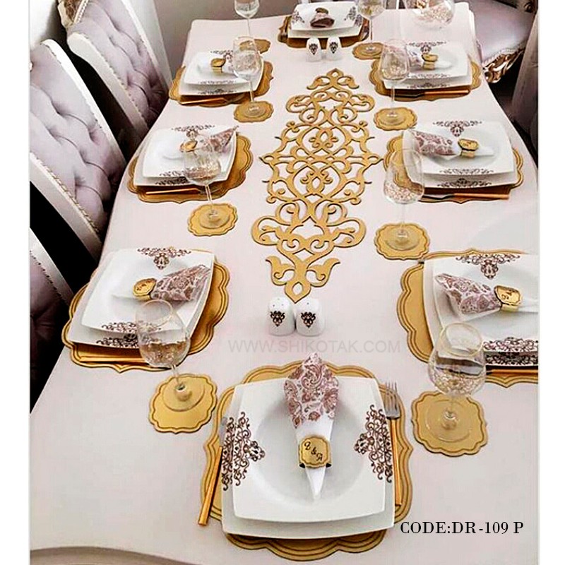ست رومیزی ناهارخوری شش نفره طلایی مدل ۱۰۹