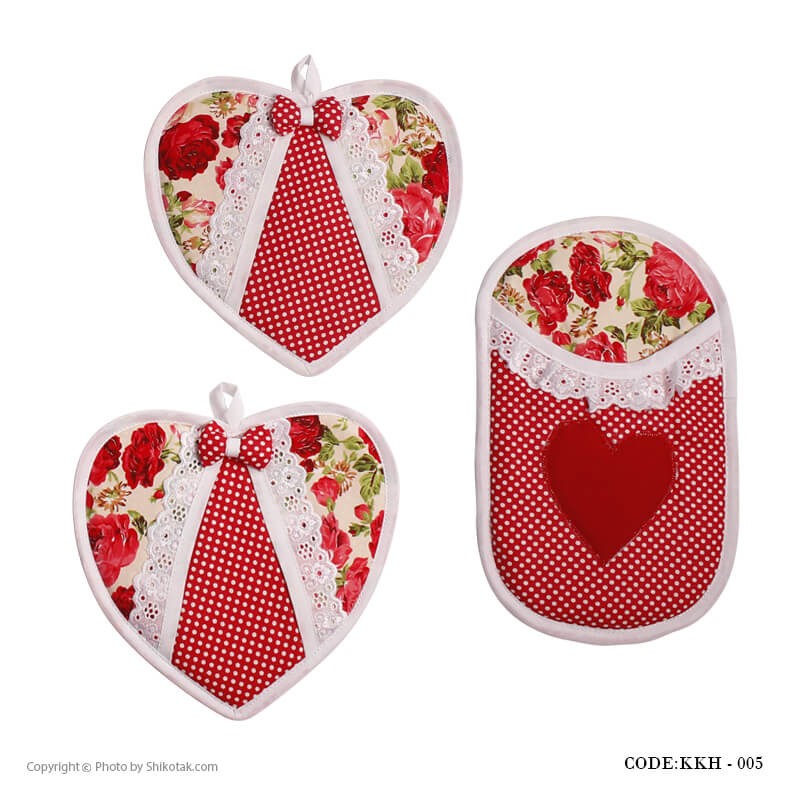 شامل | دمکنی کشدار، دستگیره، دستکش فر، سبدنان، دستمال سفره، پیشبندضد آب، روقوری، حوله آشپزخانه، کیسه سبزی، دستگیره قابلمه، سفره پاک کن، کاور قابلمه |