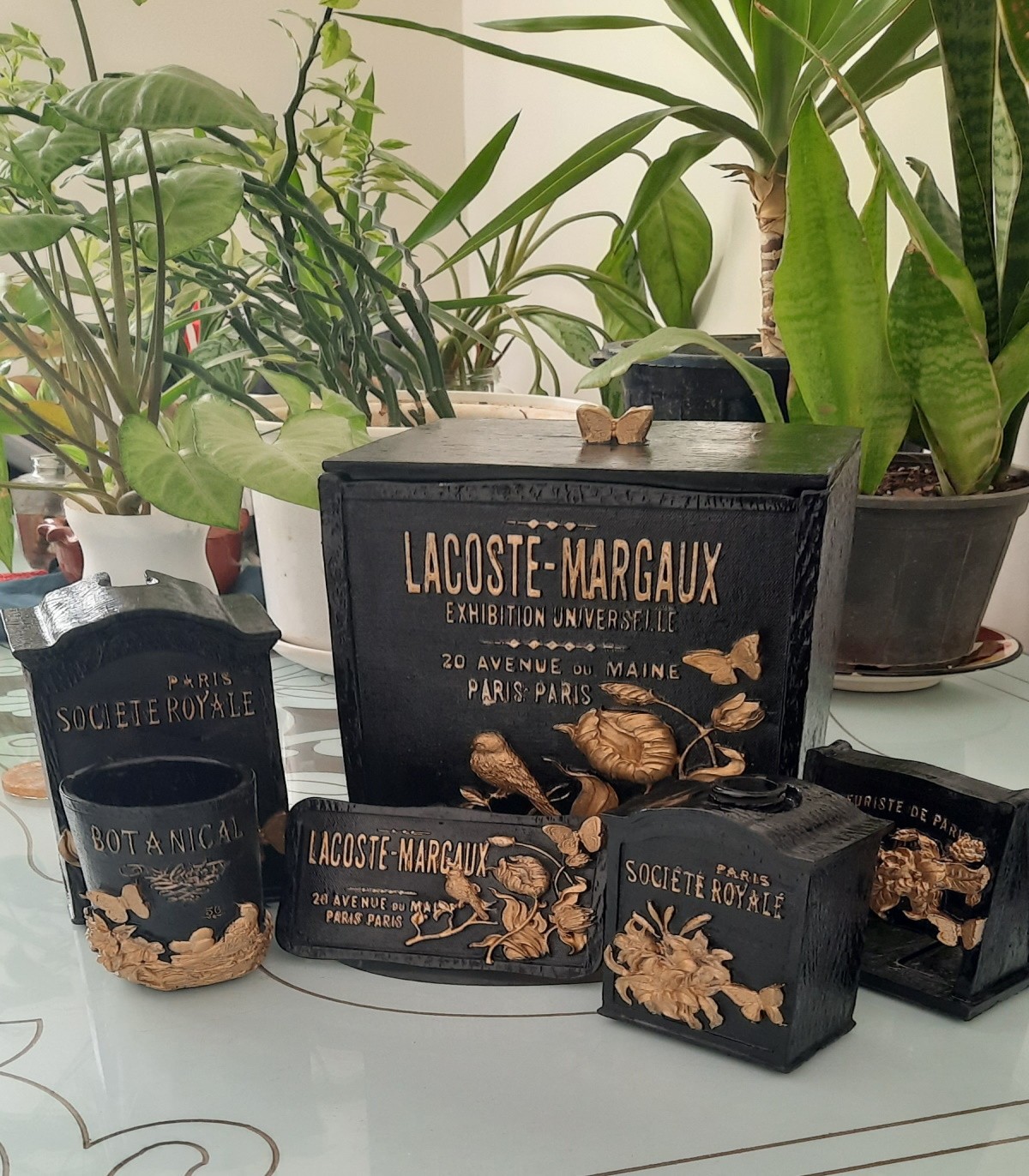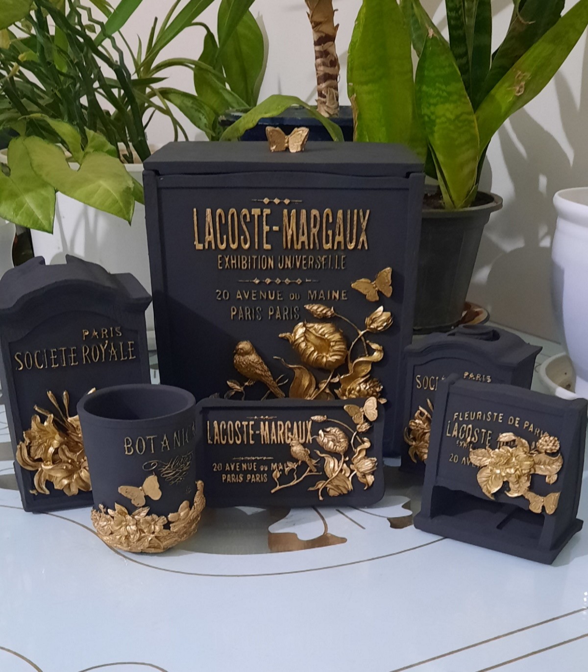 شامل:سطل، جای فرچه، جا مایع، جا صابون، لیوان، جامسواکی
