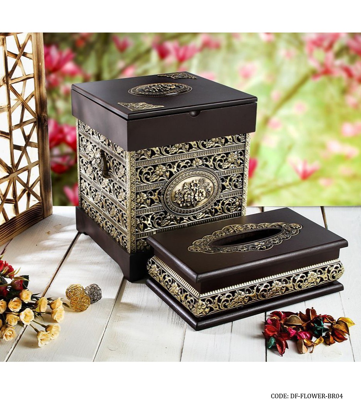 ست سطل و جادستمالی ام دی اف قهوه ای طرح نهال