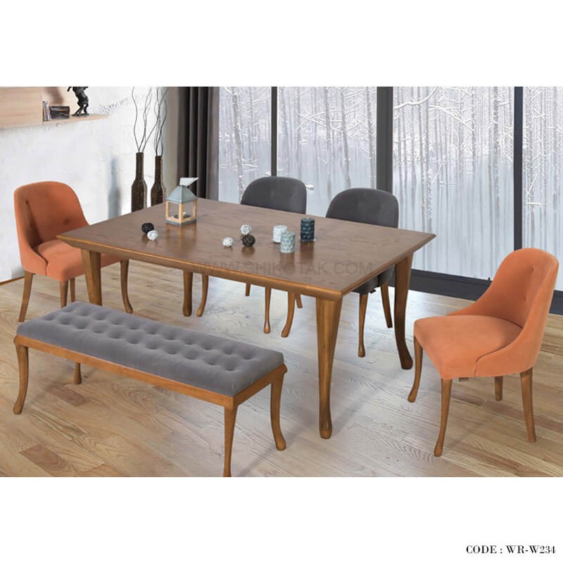 ست ناهار خوری نیمکت دار شش نفره از چه چوبی ساخته می شود؟