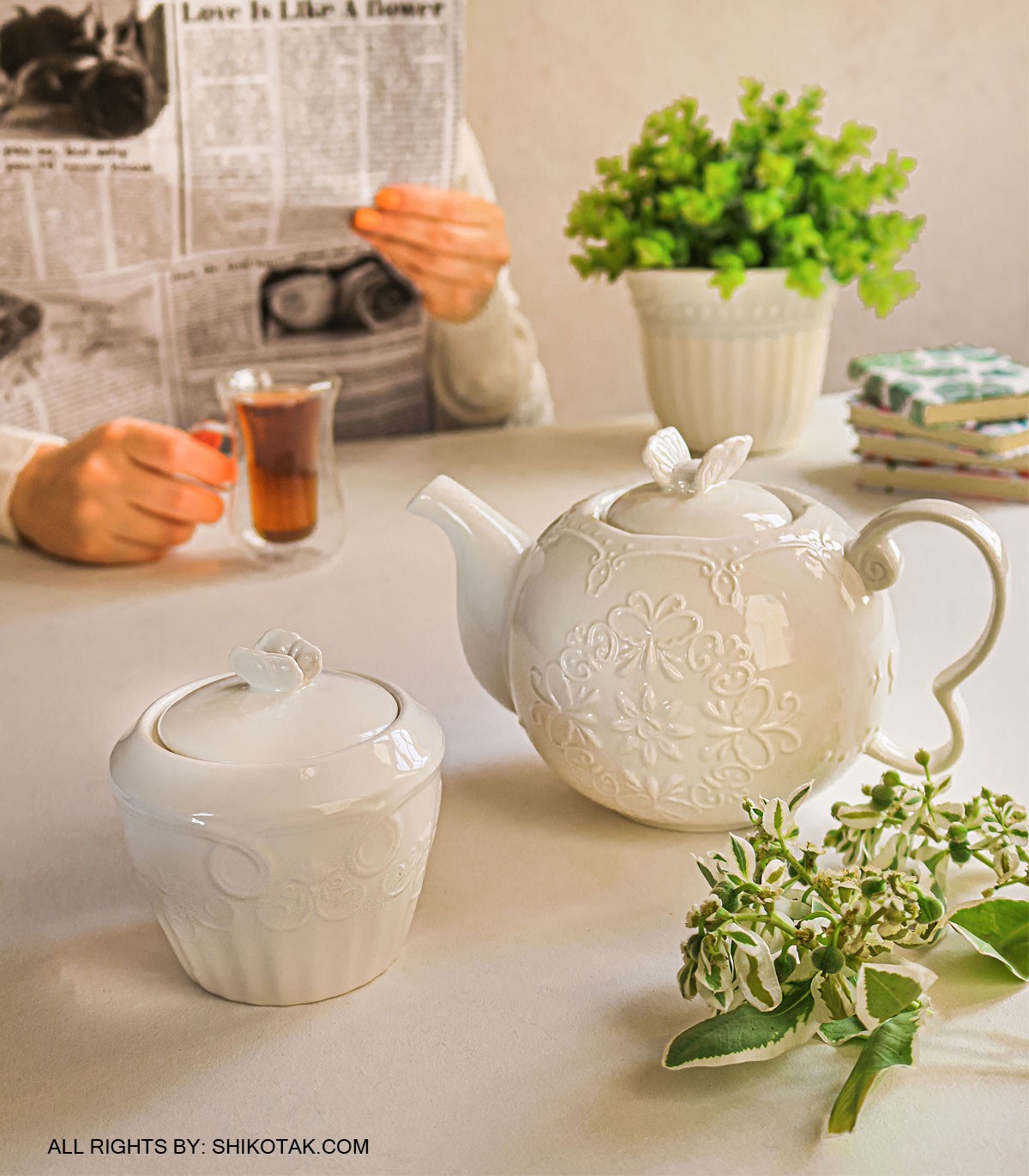 - شامل یک عدد قوری درب دار، یک عدد قندان درب دار
