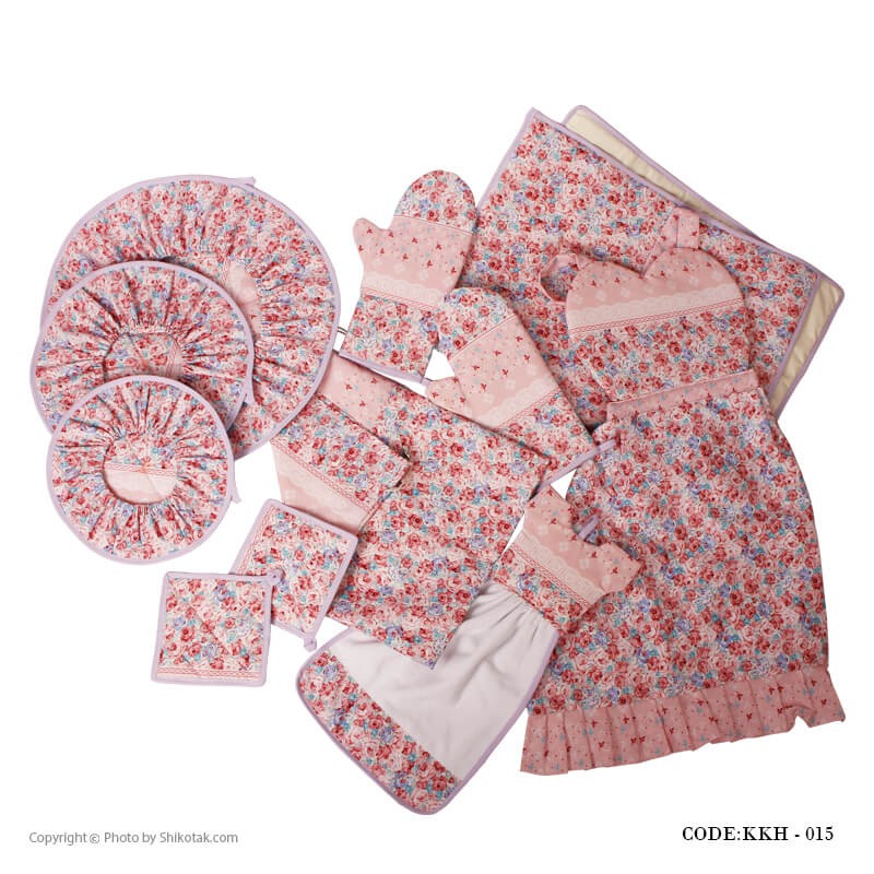 شامل | نمگیر ظرف، پیش بند، دمکنی کش دار، دستکش فر، دستگیره مربعی، کیسه نان و سبزی، حوله آشپزخانه |