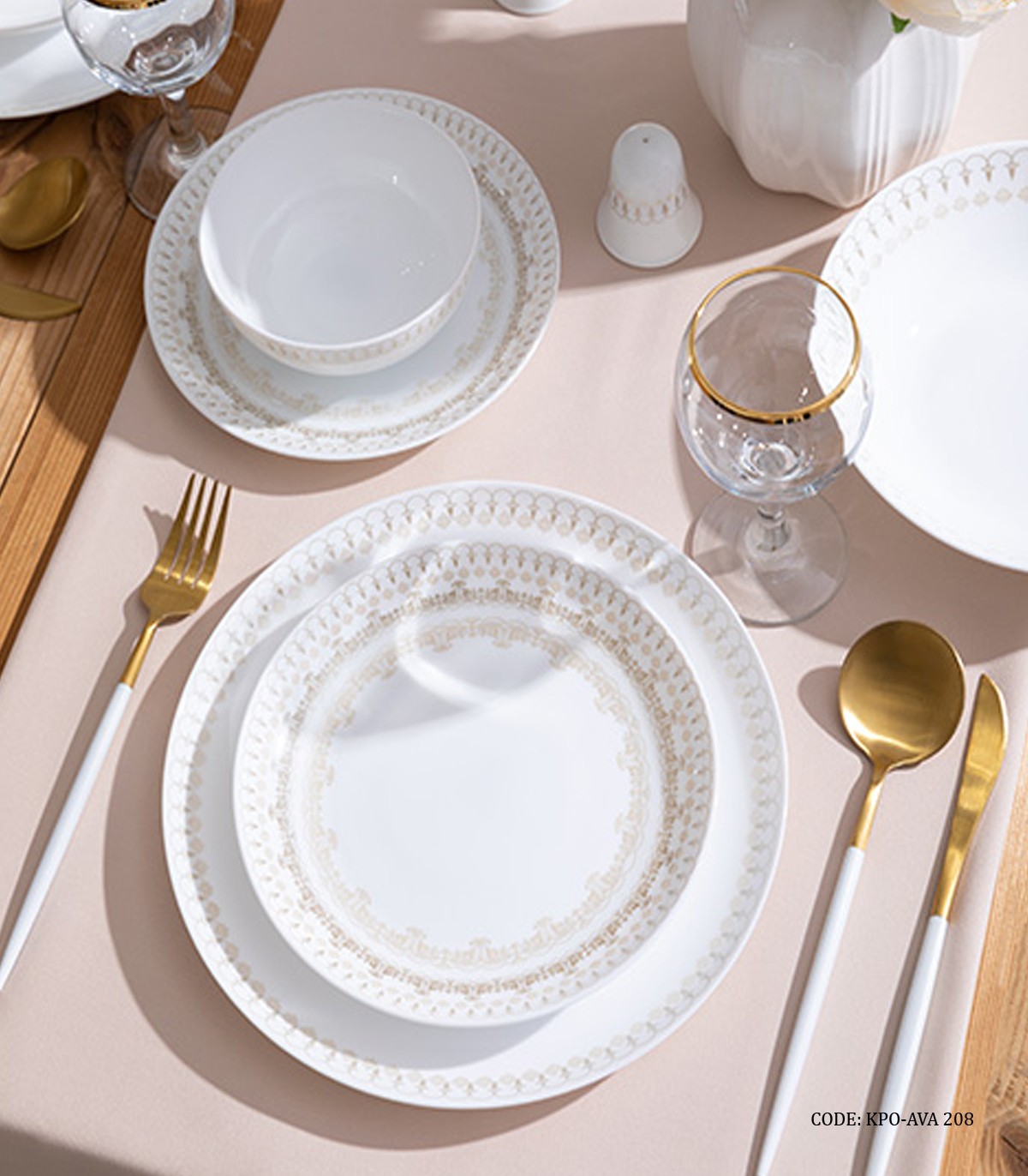 شامل | دیس -کاسه سالاد – بشقاب غذاخوری – بشقاب خورش خوری – پیش دستی – کاسه ماست خوری – نمک پاش |