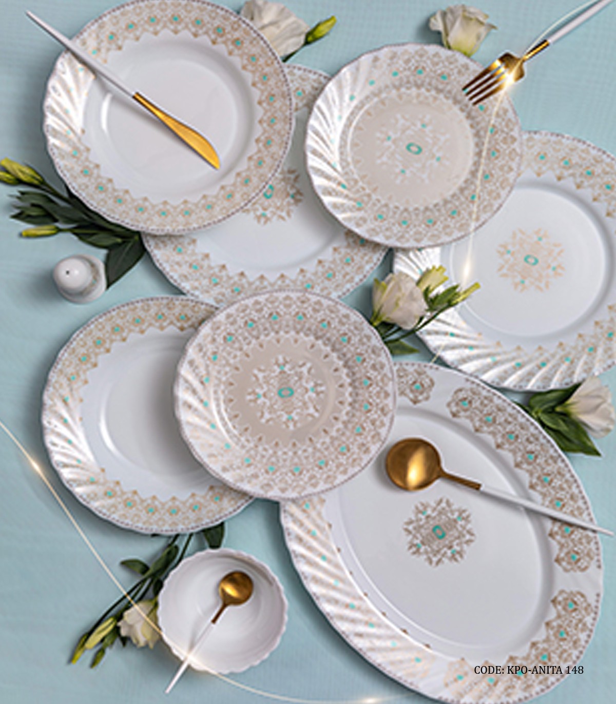 شامل | دیس -کاسه سالاد – بشقاب غذاخوری – بشقاب خورش خوری – پیش دستی – کاسه ماست خوری – نمک پاش |